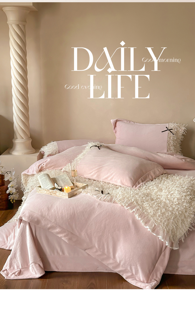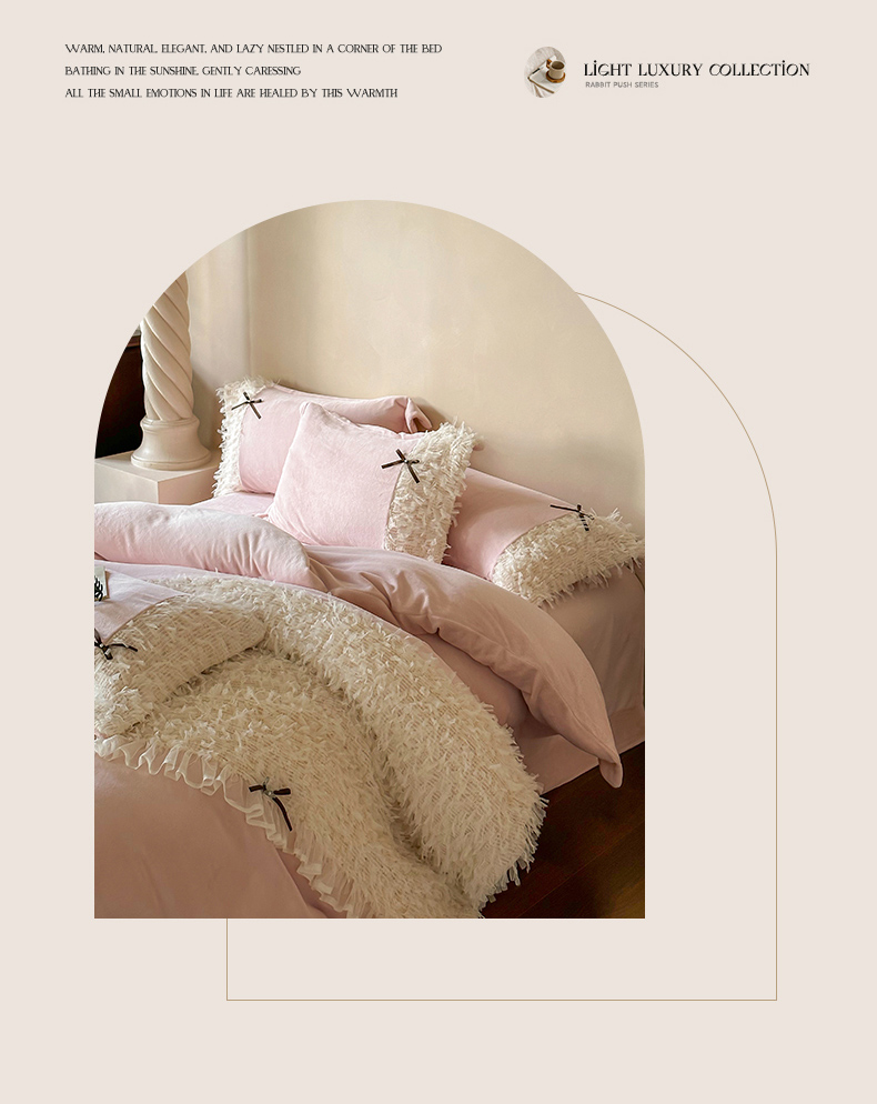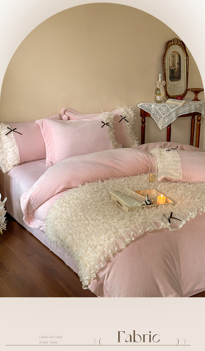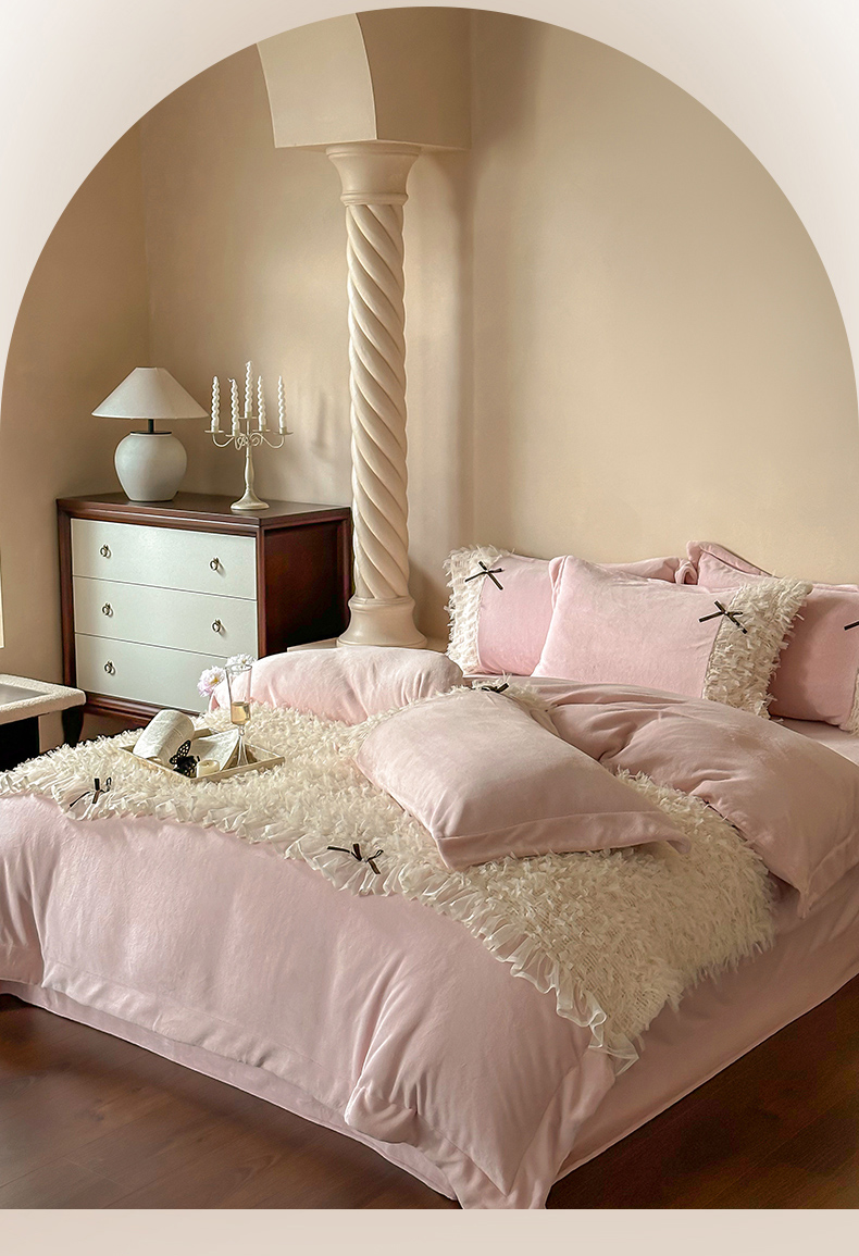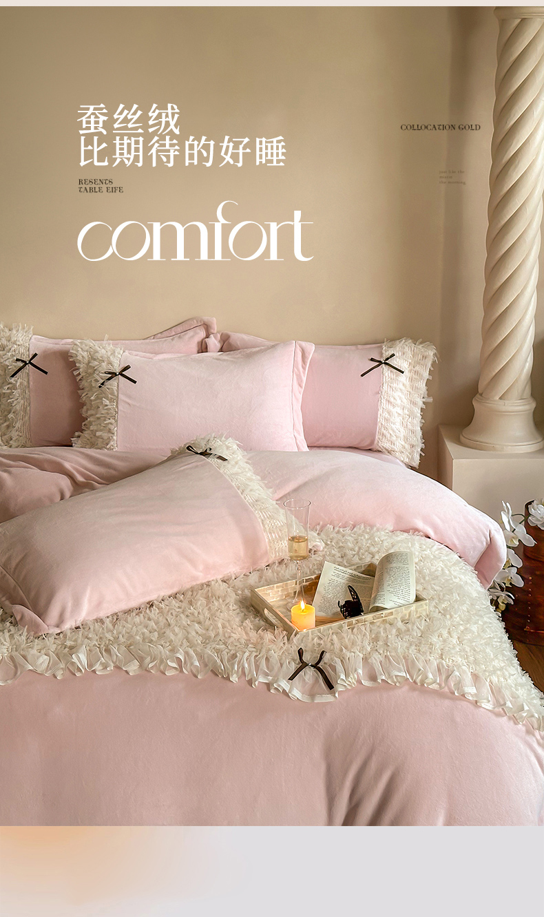 名品优仓 2024新款高克重牛奶绒蕾丝四件套-爱瑞丝的梦 爱瑞丝的梦-牛奶粉