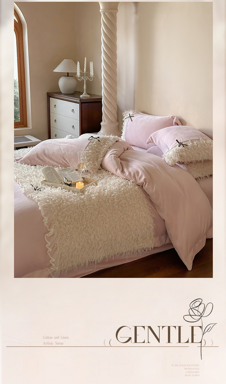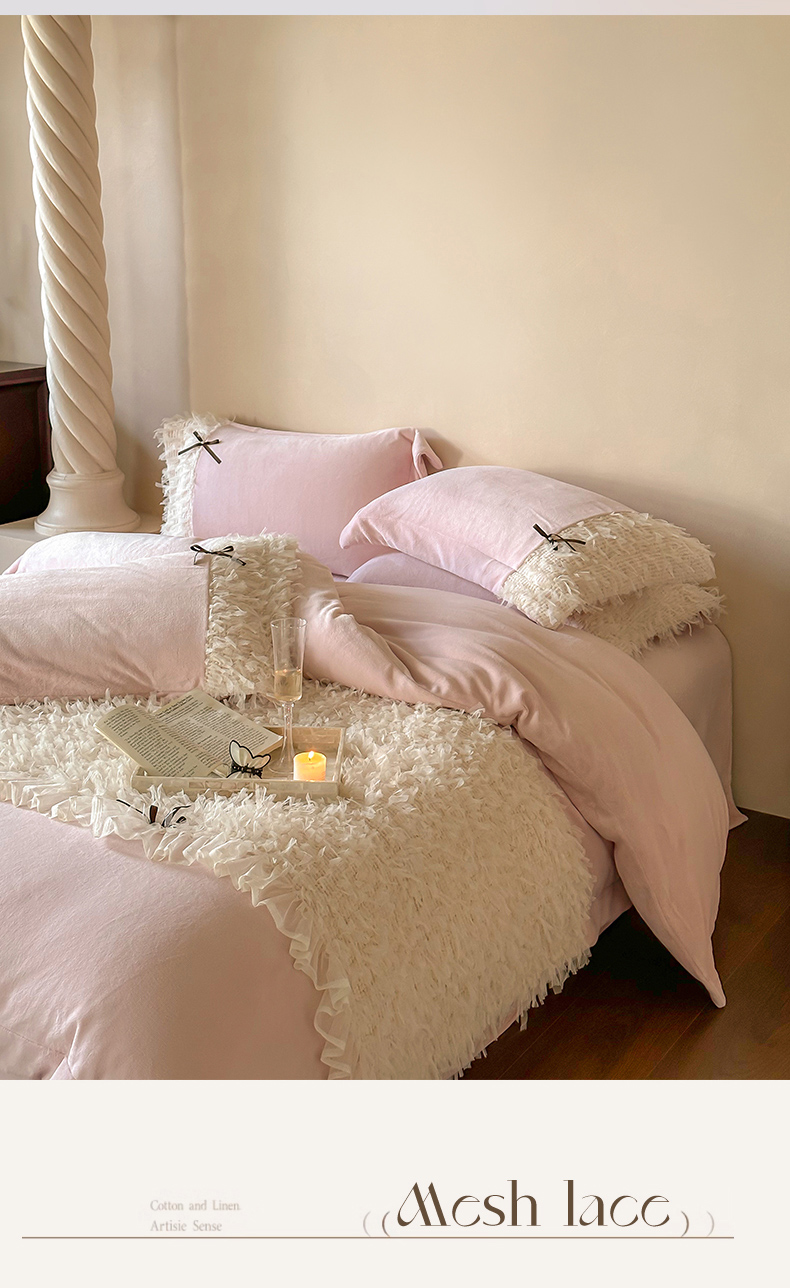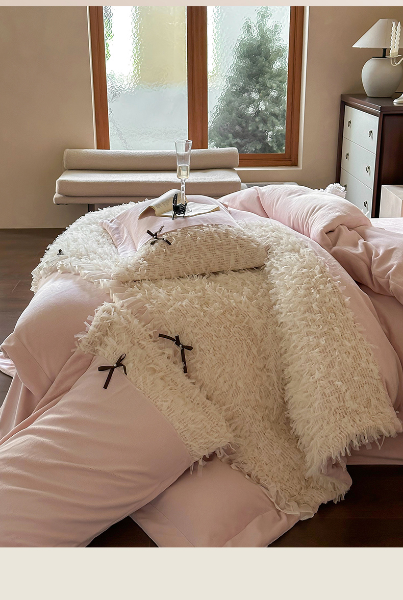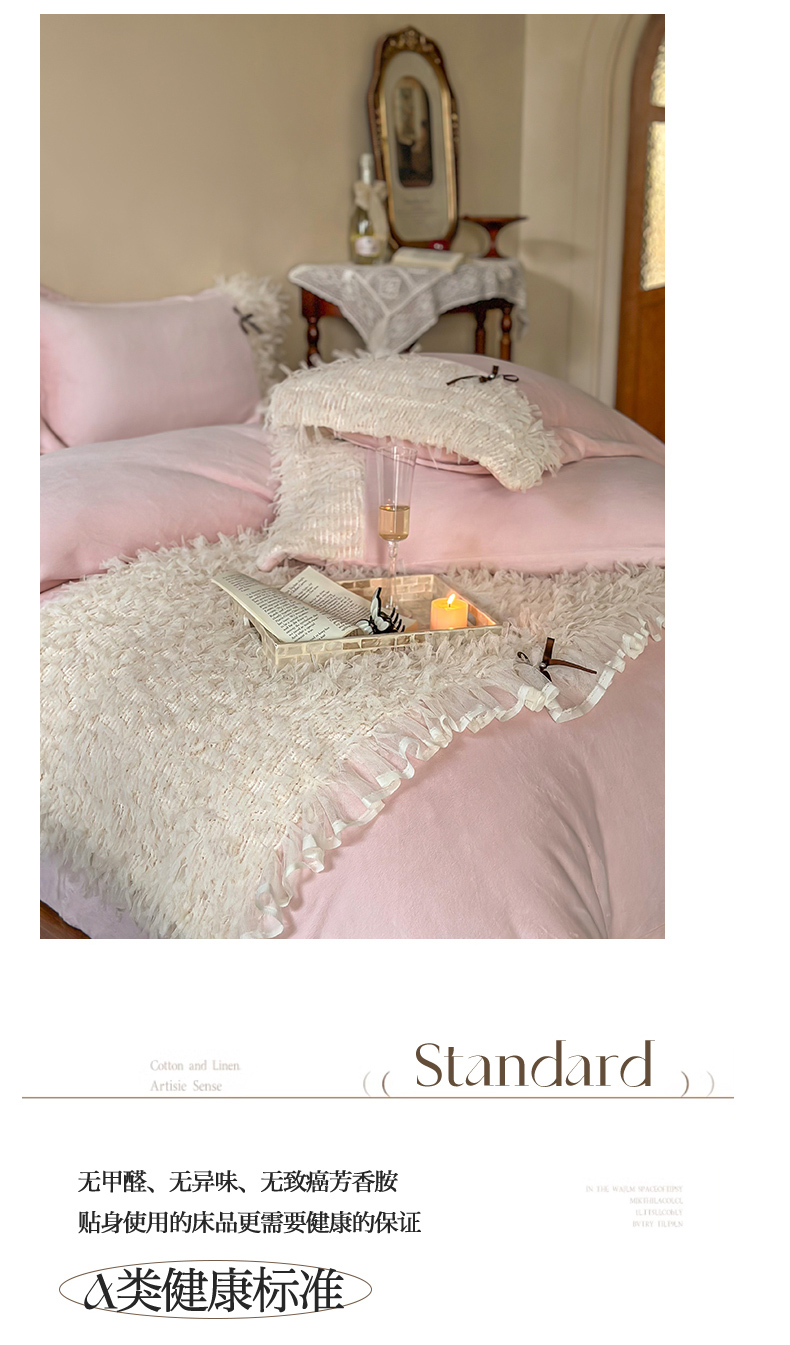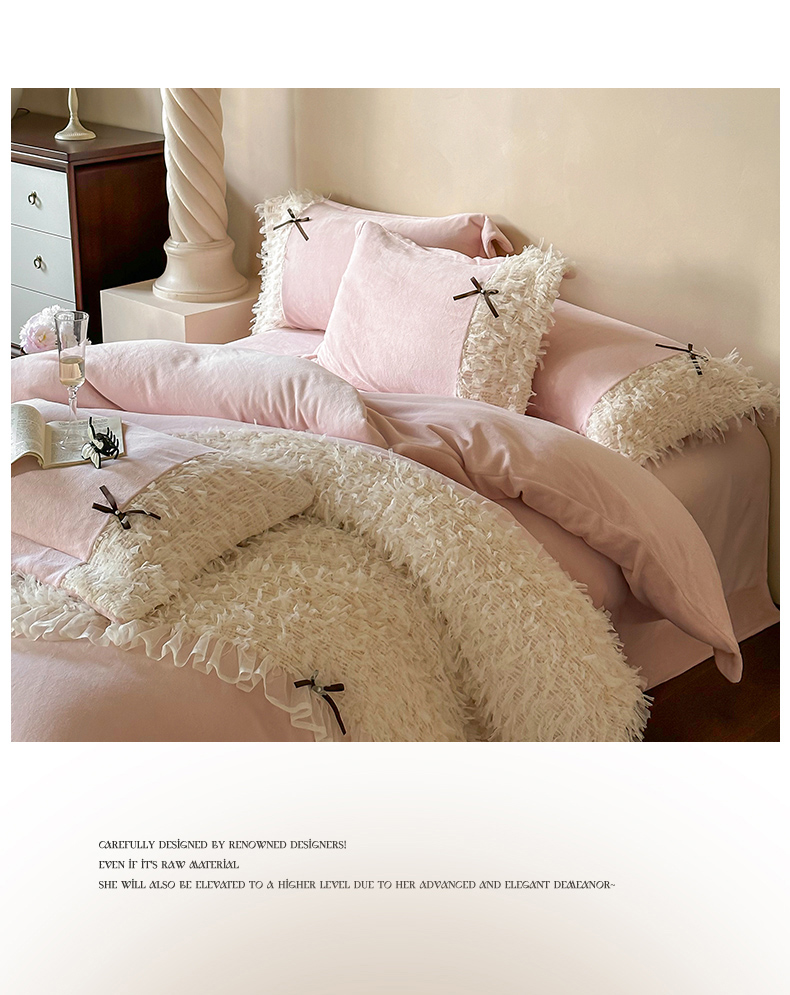 名品优仓 2024新款高克重牛奶绒蕾丝四件套-爱瑞丝的梦 爱瑞丝的梦-牛奶粉