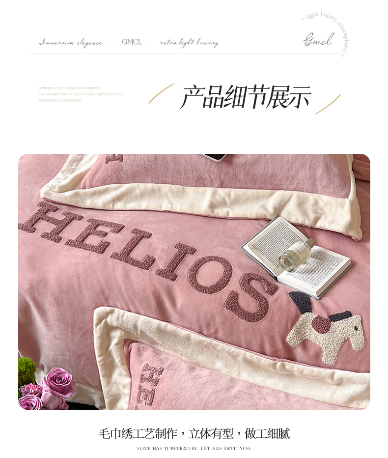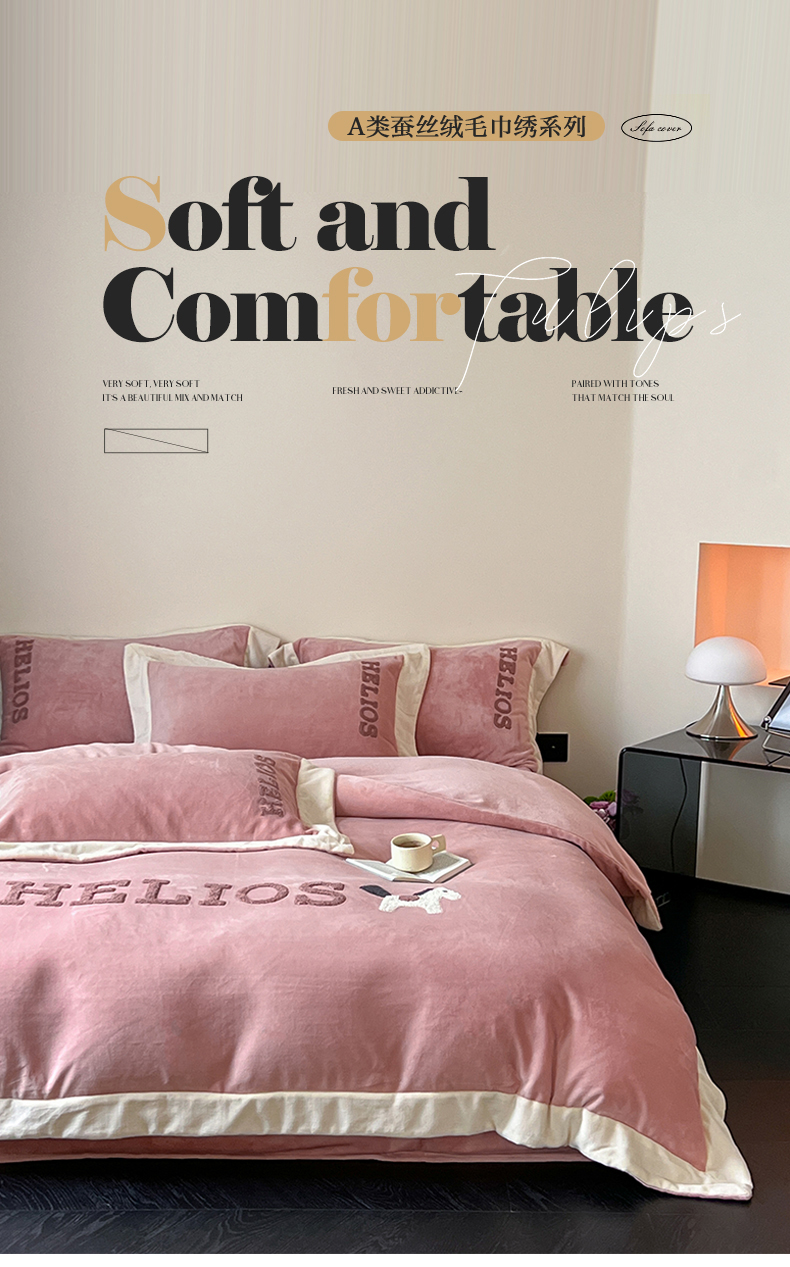 商品名称:名品优仓 2024新款高克重牛奶绒毛巾绣四件套-莫安迪 莫安迪- 暖蔷薇