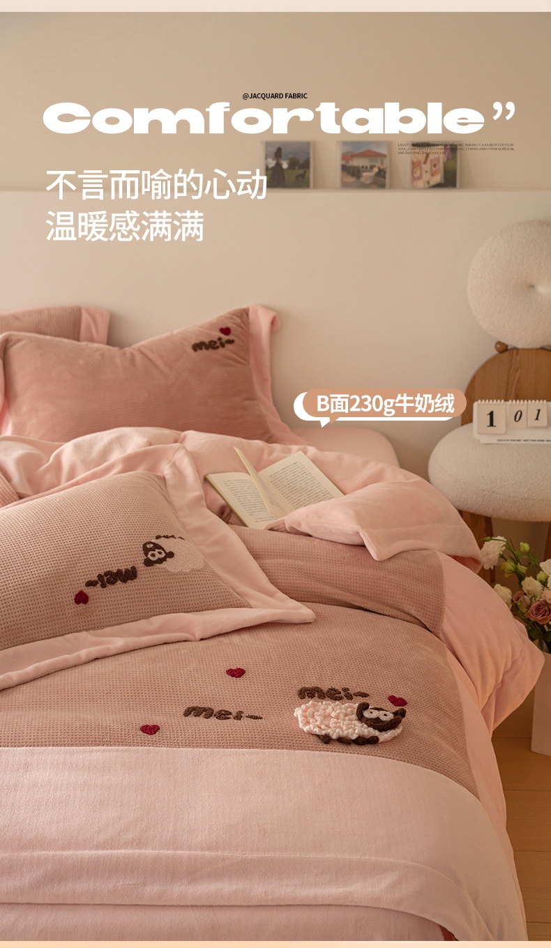 (总)名品优仓 2025新款220克牛奶绒绣花四件套-珊瑚,珊瑚-宝石蓝,珊瑚-粉色,珊瑚-姜黄,珊瑚-米杏,珊瑚-沫粉,珊瑚-杏粉