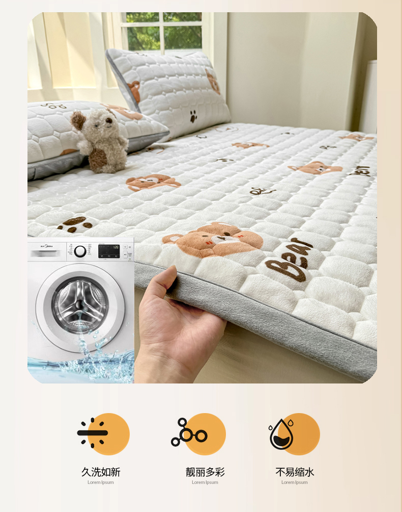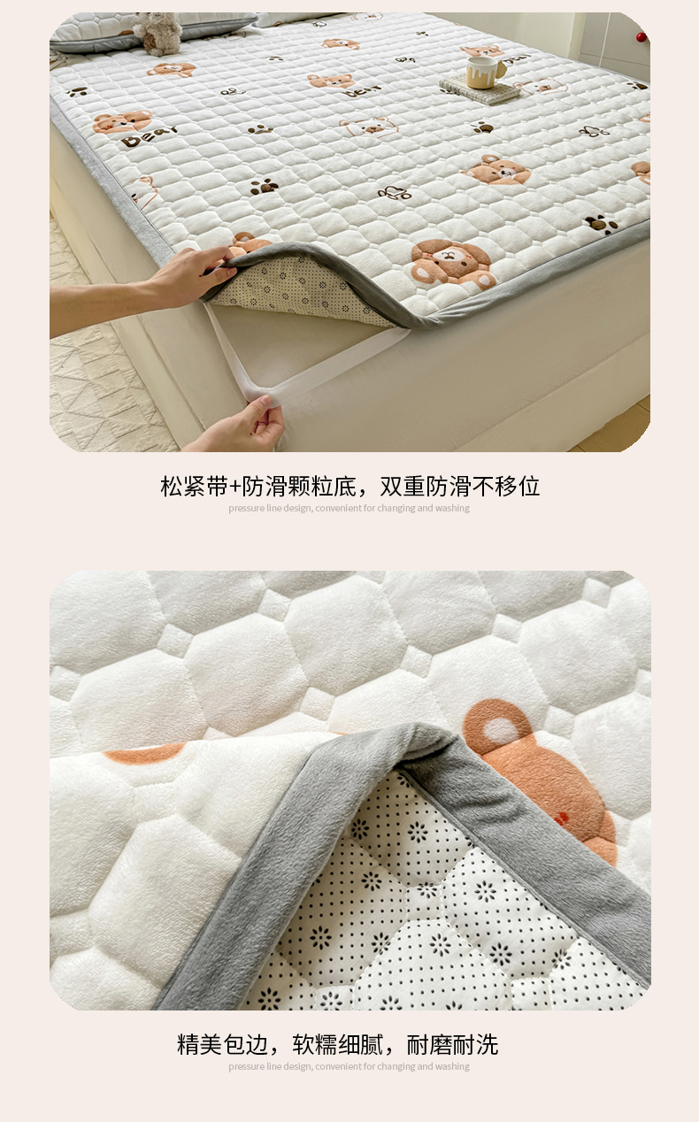 当前位置: 91家纺网 > 商品网购 > 床垫/床褥 > 普通床垫 > 2024新款牛奶绒床垫保暖床褥子夹棉加厚印花床护垫大床图 熊的脚印