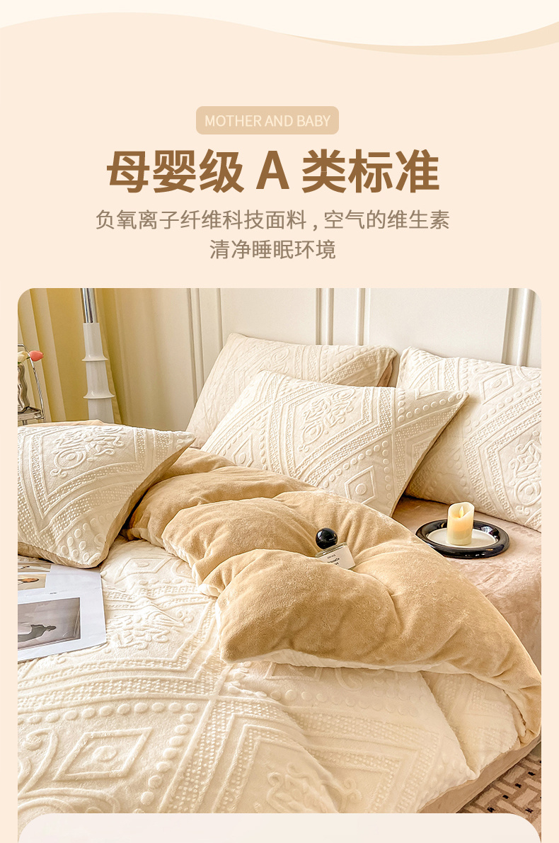 商品名称:沐晴家纺 2024秋冬新款雕花牛奶绒纯色简约轻奢四件套 法式浪漫-高级灰
