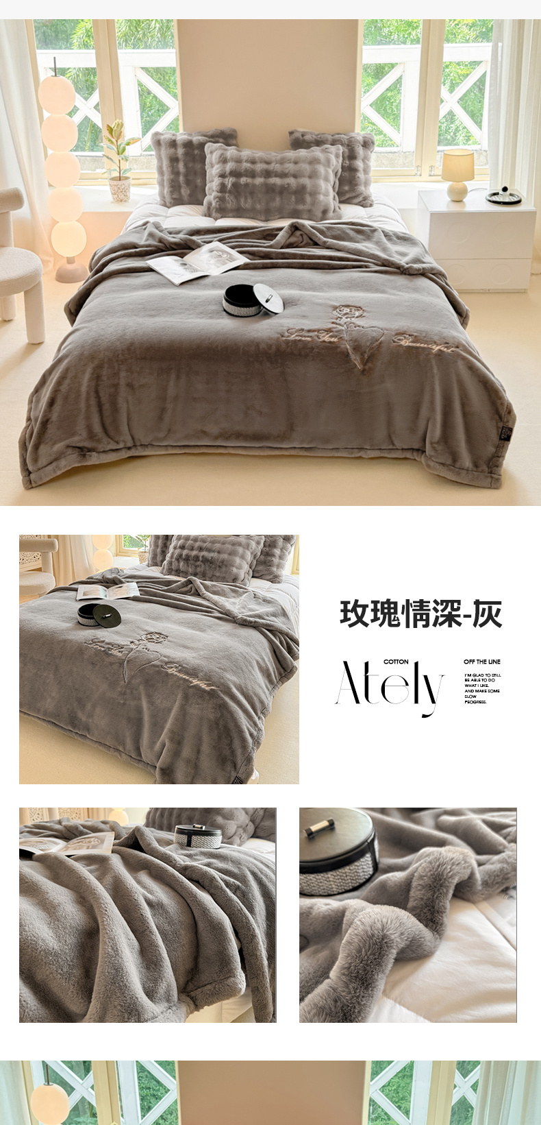 商品名称:悦织湾家纺 2025新款轻奢仿兔毛绒仿裘皮仿皮草绣花毛毯 玫瑰情深-灰