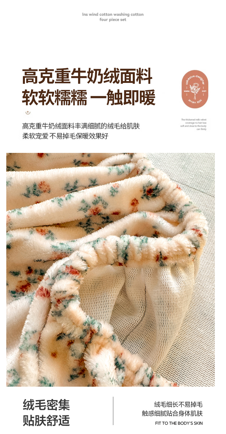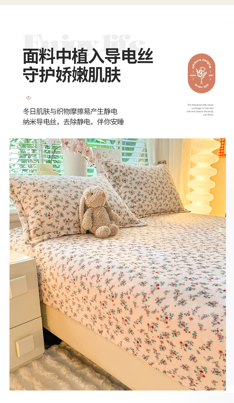 商品名称:妖妖家纺 2024新款200克牛奶绒单床笠 后花园