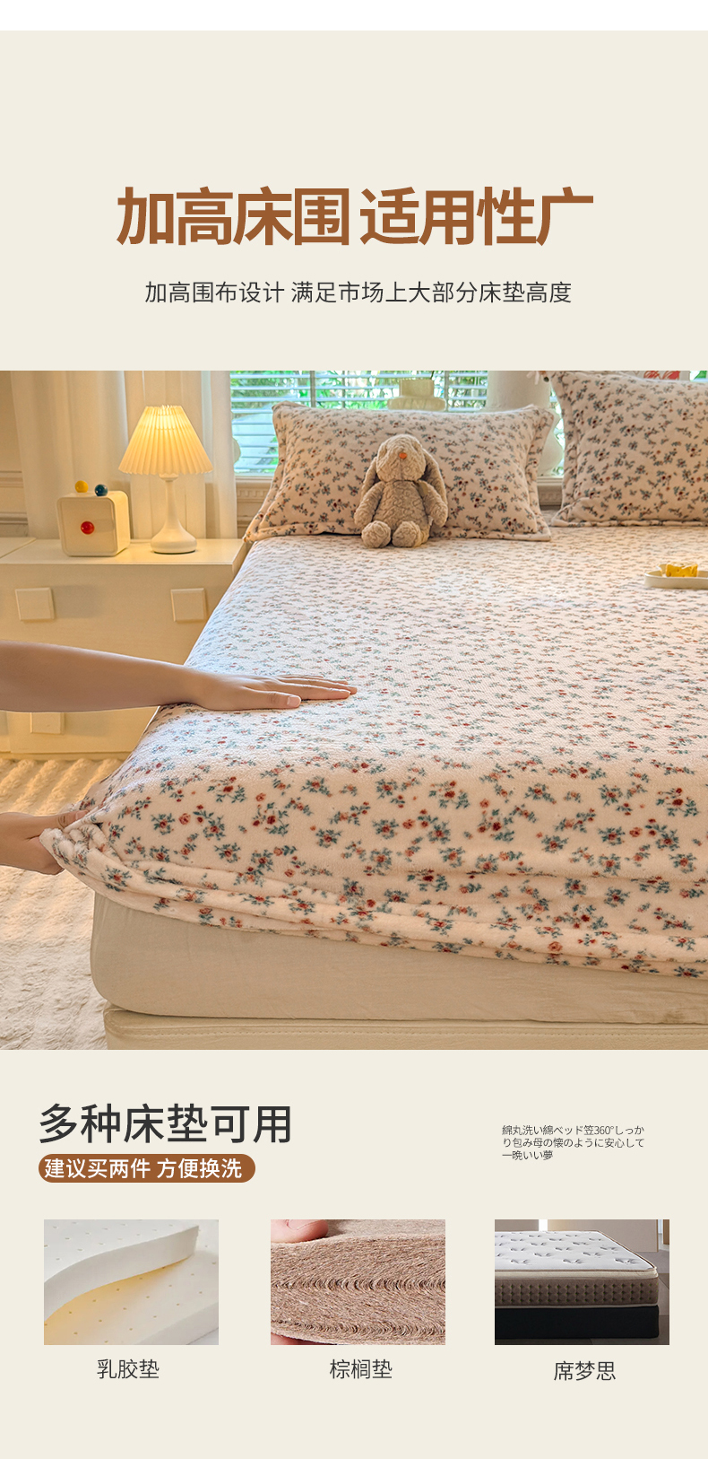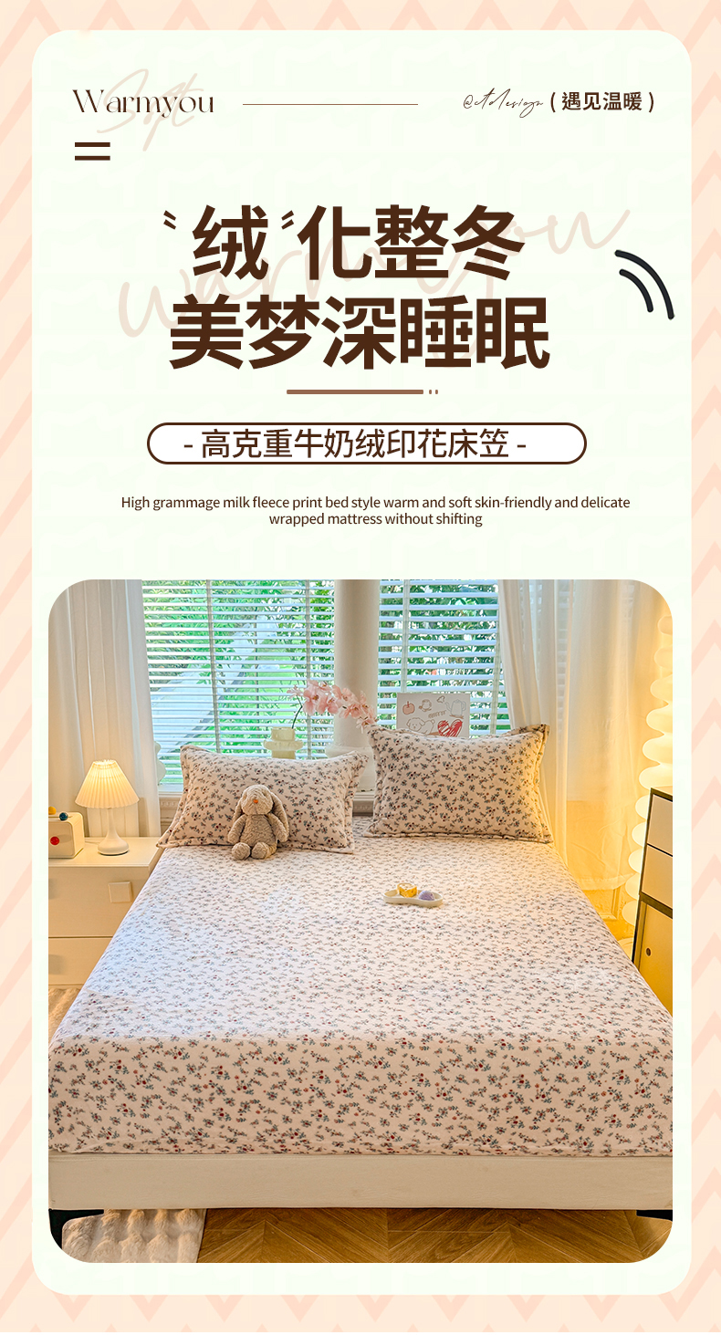妖妖家纺 2024新款200克牛奶绒单床笠 后花园