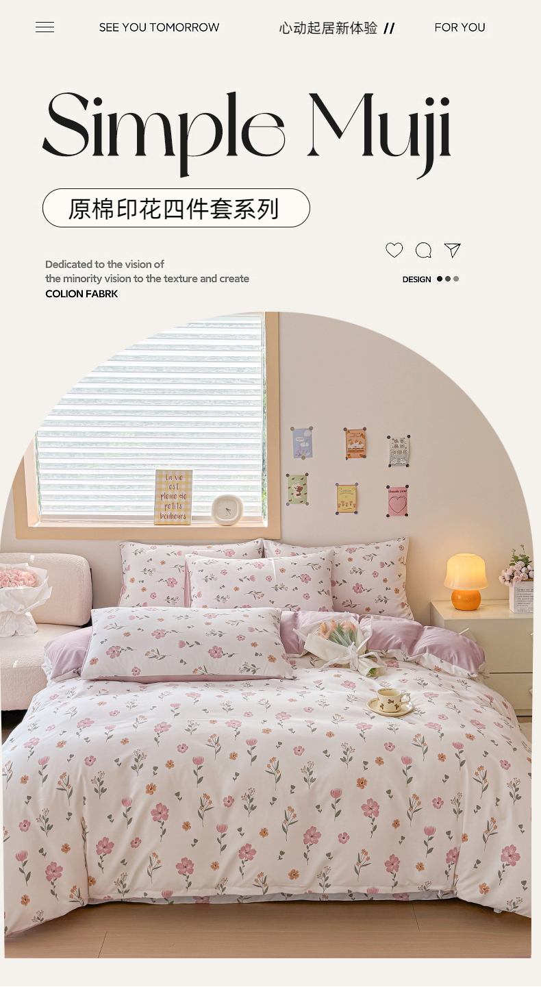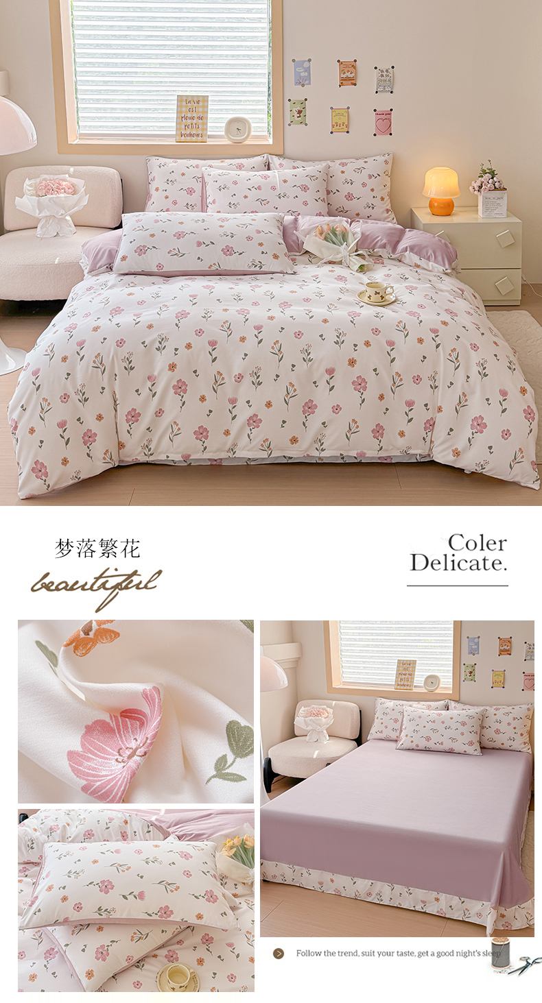 铭浩家纺 2025新款原棉印花四件套 梦落繁花
