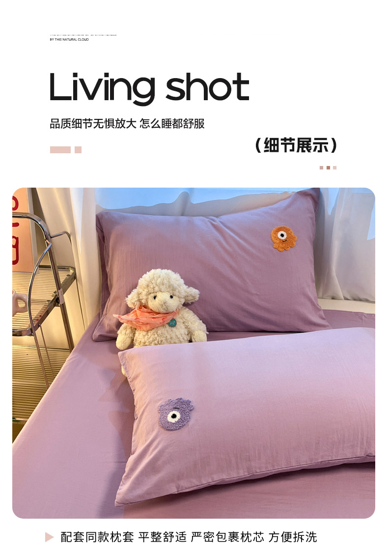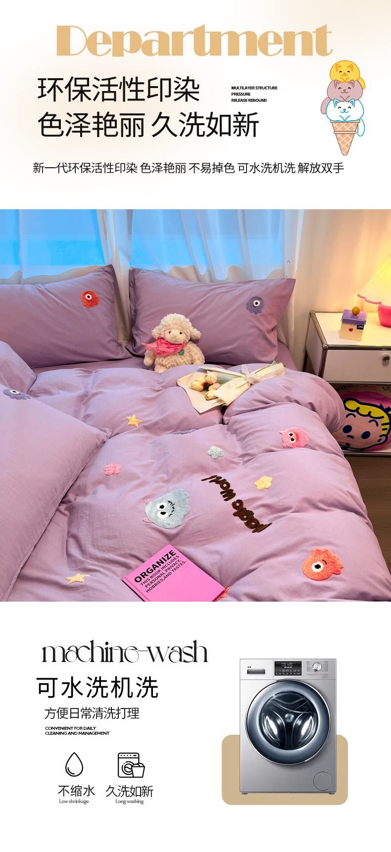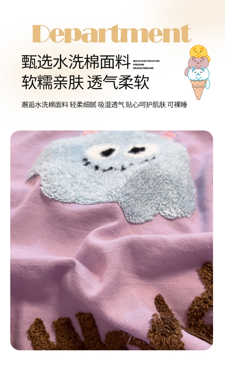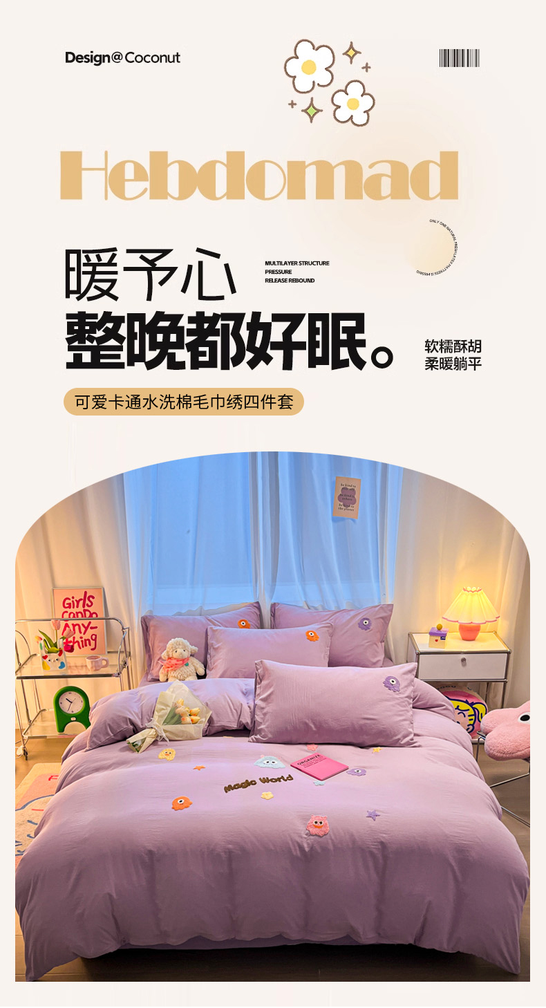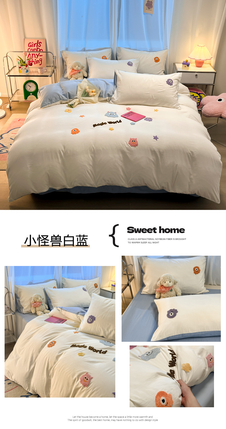 (总)葡萄家 2024新款毛巾绣水洗云朵棉萌系小怪兽四件套(场景二)