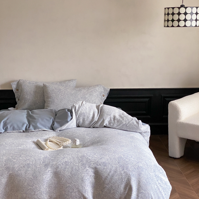 (总)旷野 2025新款空气层提花皱皱纱碎花边工艺款四件套-竹梦,竹梦