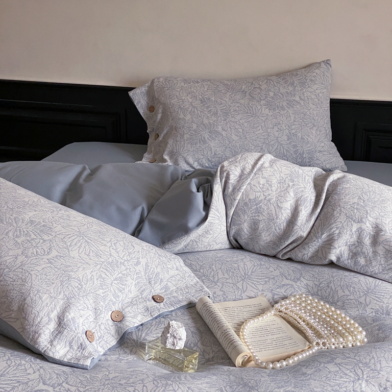 商品名称:旷野 2024新款全棉色织大提花磨毛四件套 晚枫林-蓝