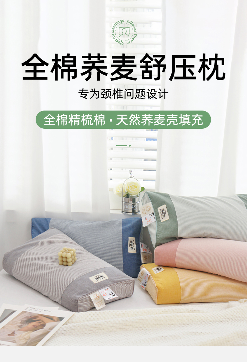 (总)2024新款荞麦枕A类立体全棉荞麦舒压枕头单人宿舍荞麦皮枕芯硬枕