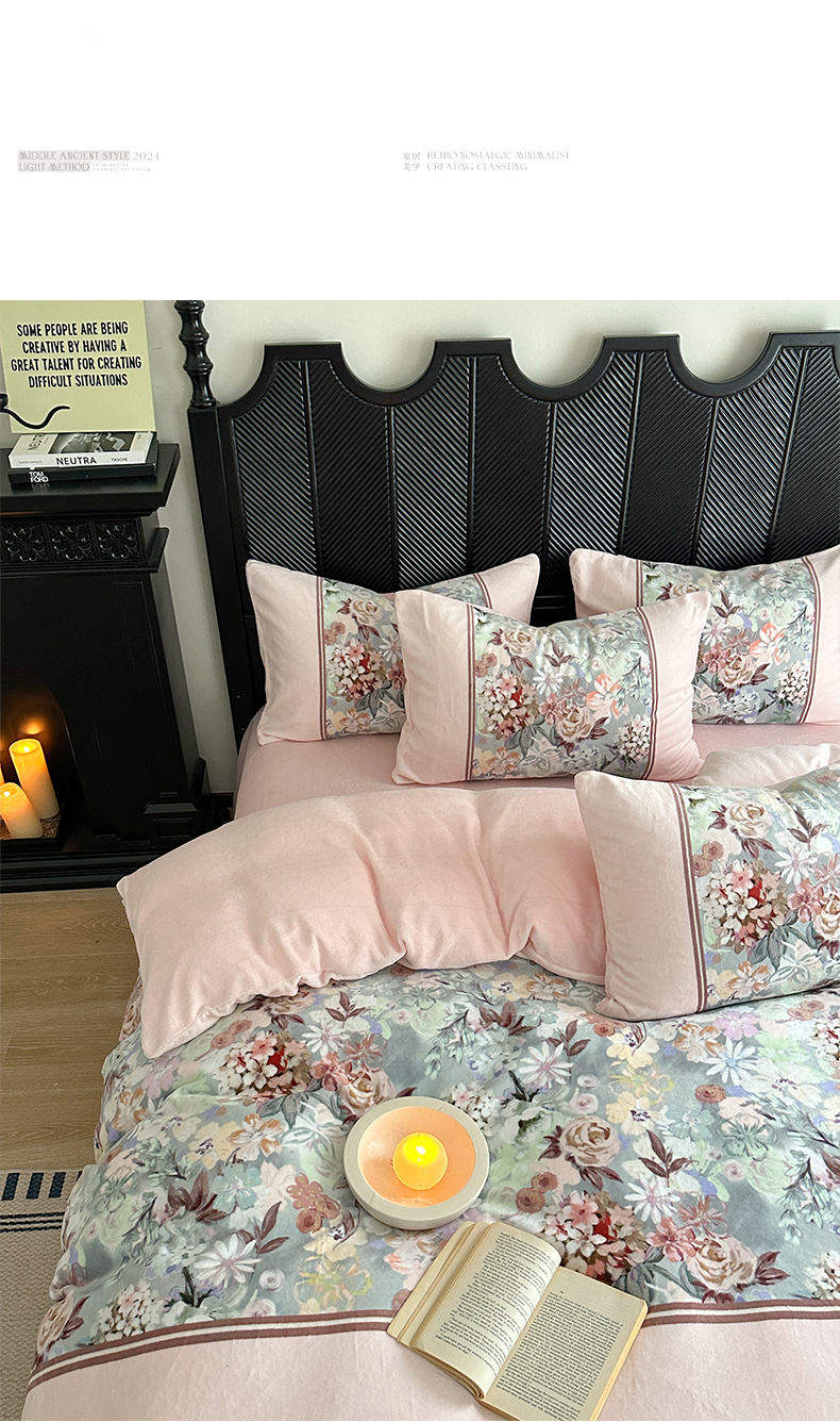 (总)Sweet dreams甜梦 2024新款全消光数码印花加厚复古碎花牛奶绒四件套-实拍图
