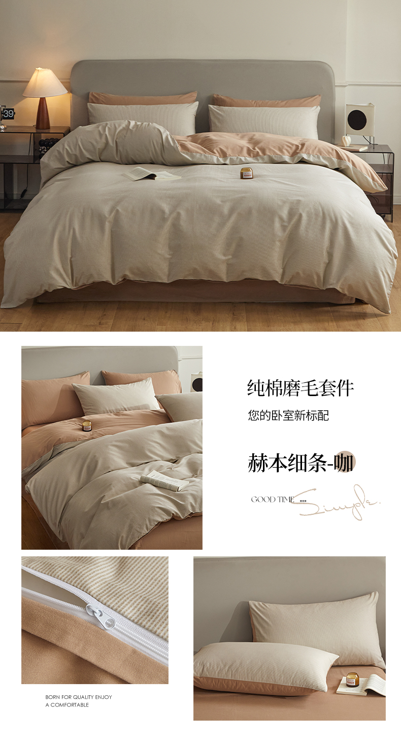 商品名称:恋人优选 2024新款A类纯棉磨毛四件套 赫本细条-咖