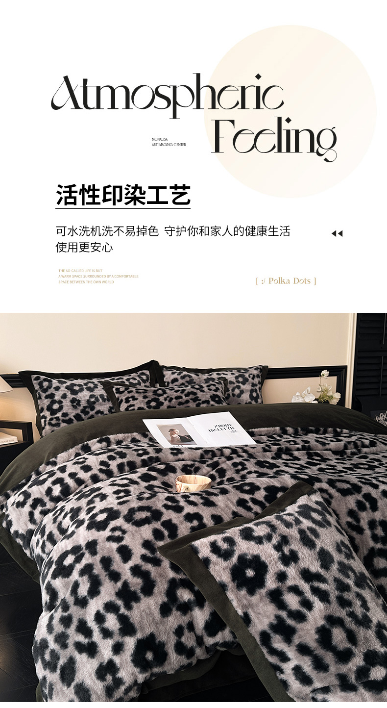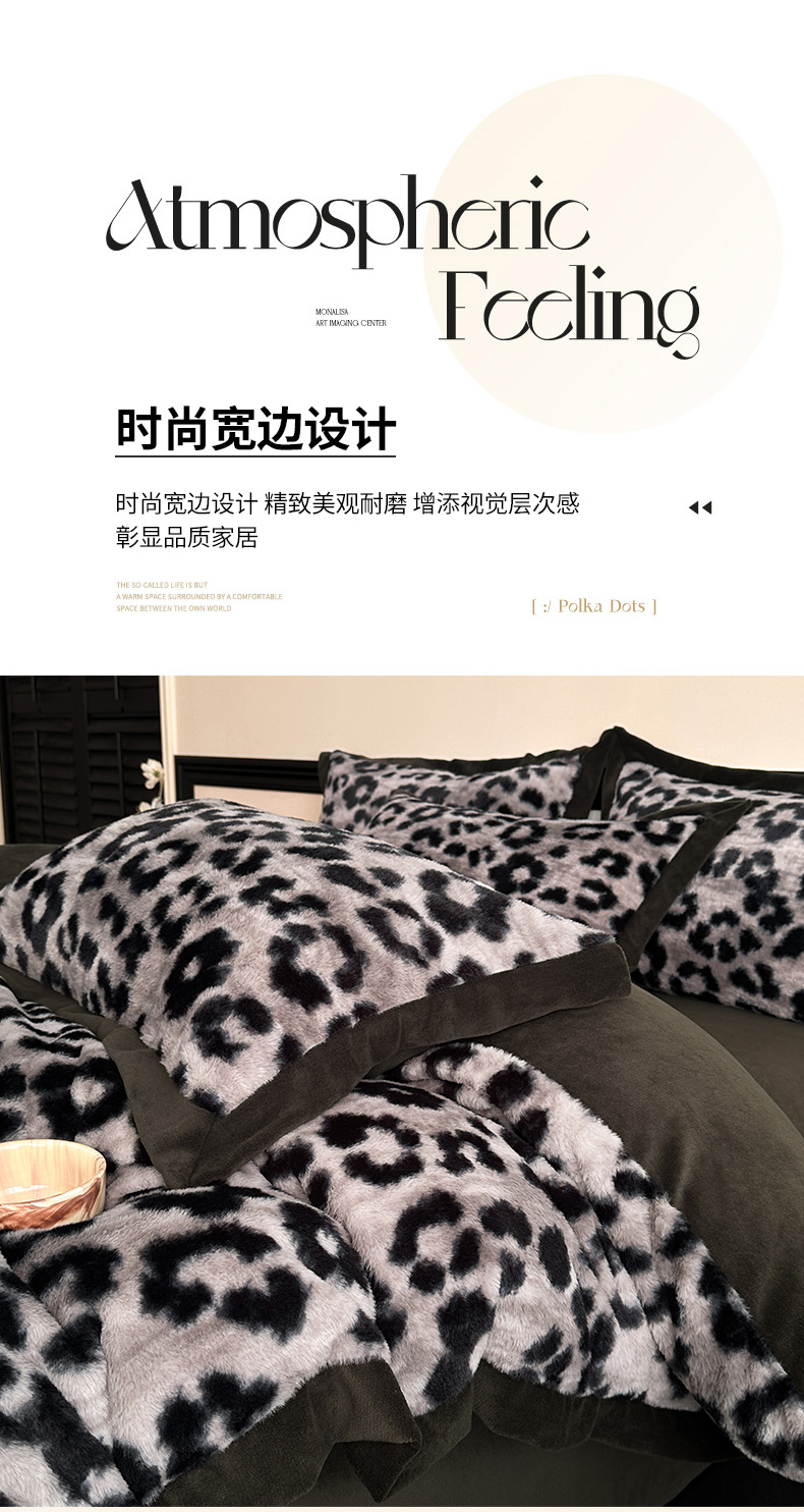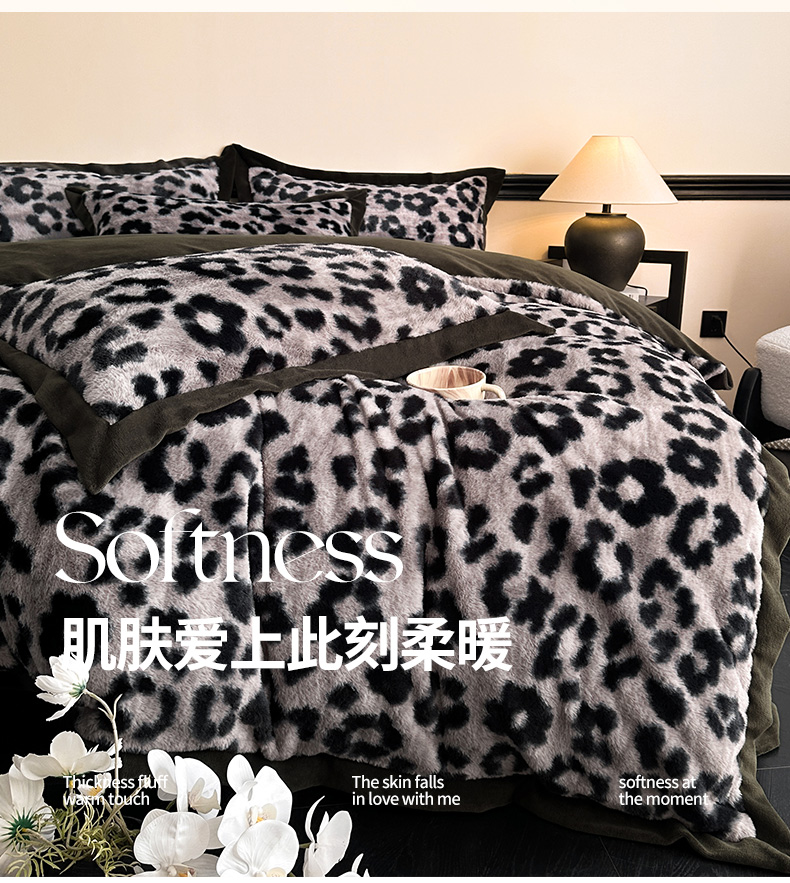 商品名称:丝印良品 2024秋冬新款丹麦绒宽边牛奶绒四件套 宽边兔绒-豹纹灰