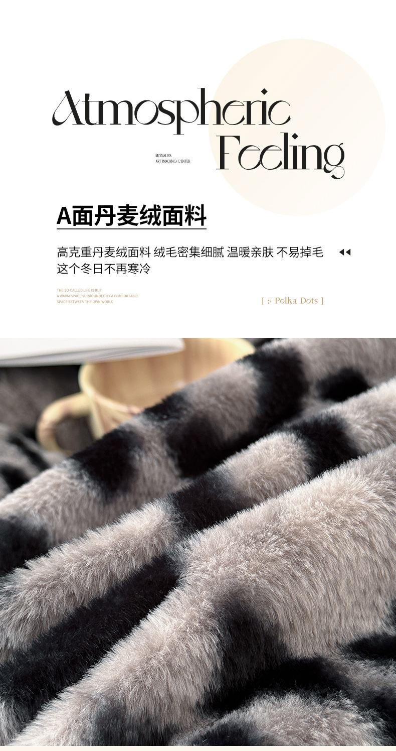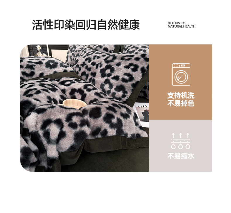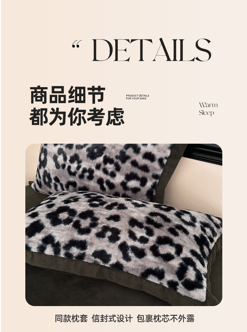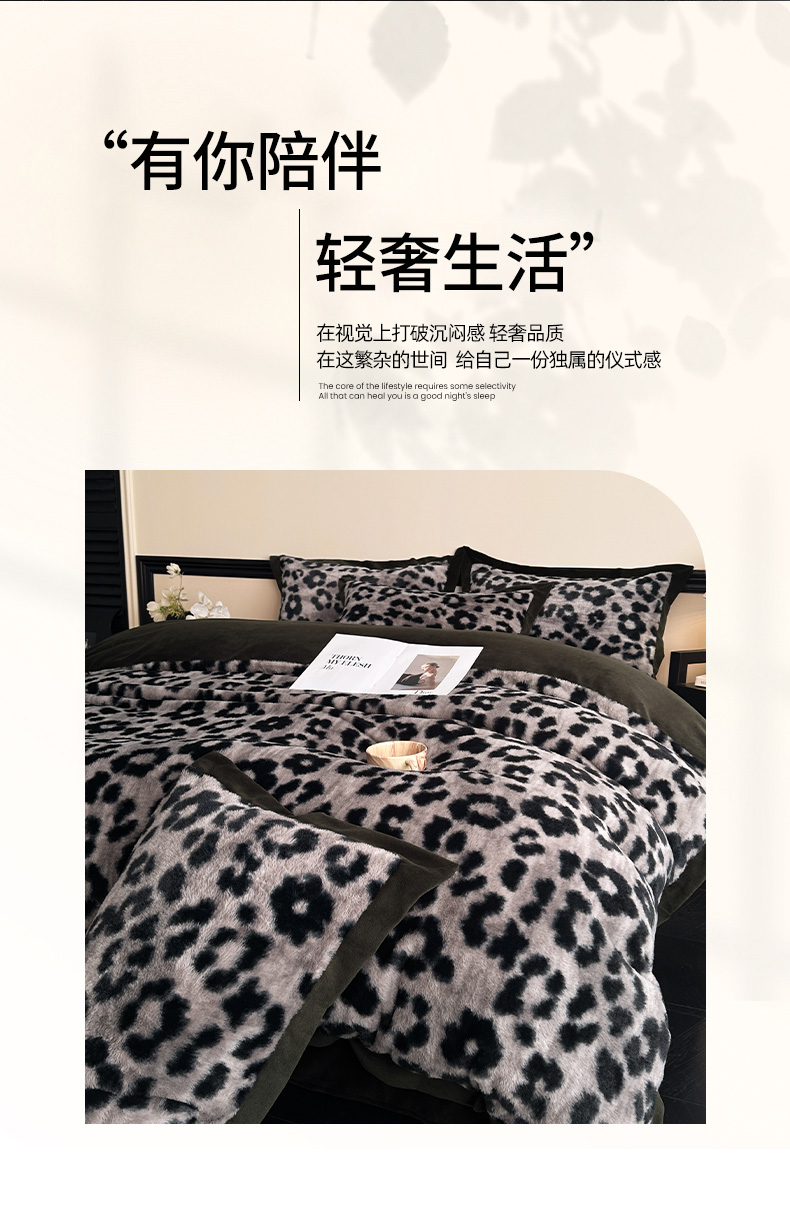 商品名称:丝印良品 2024秋冬新款丹麦绒宽边牛奶绒四件套 宽边兔绒-豹纹灰