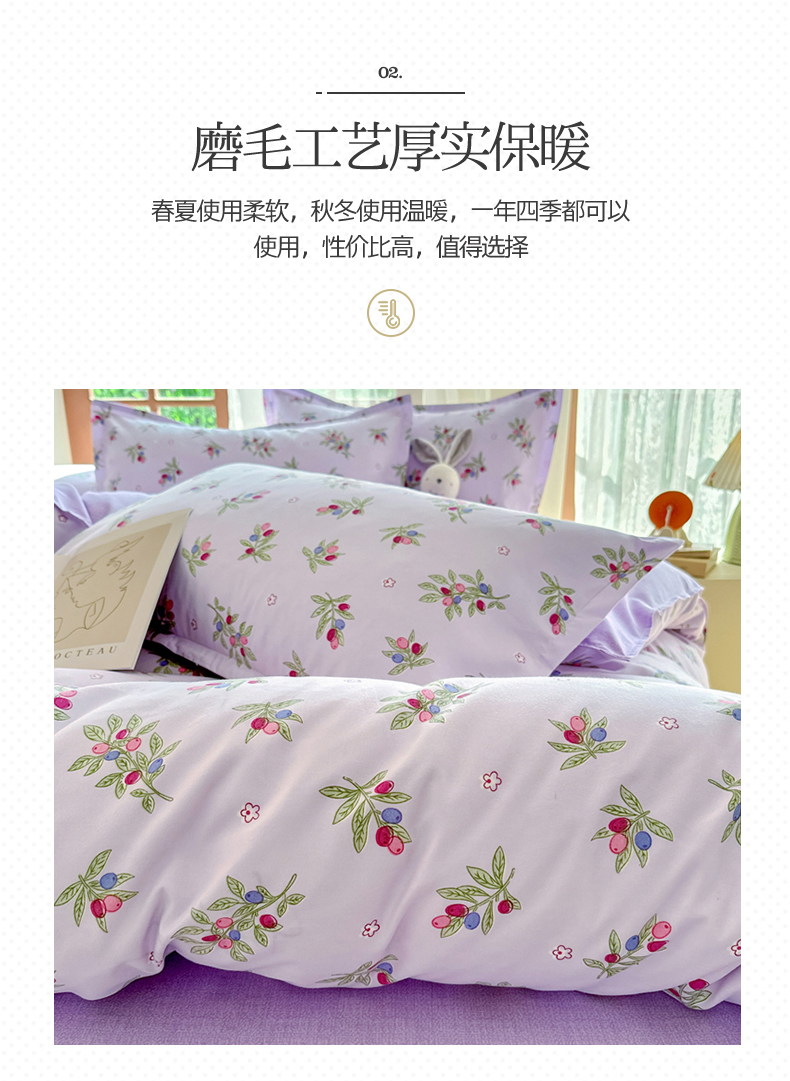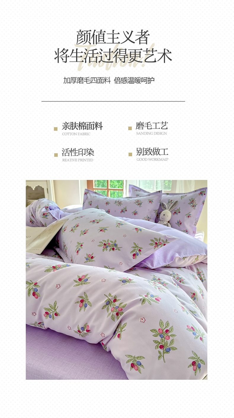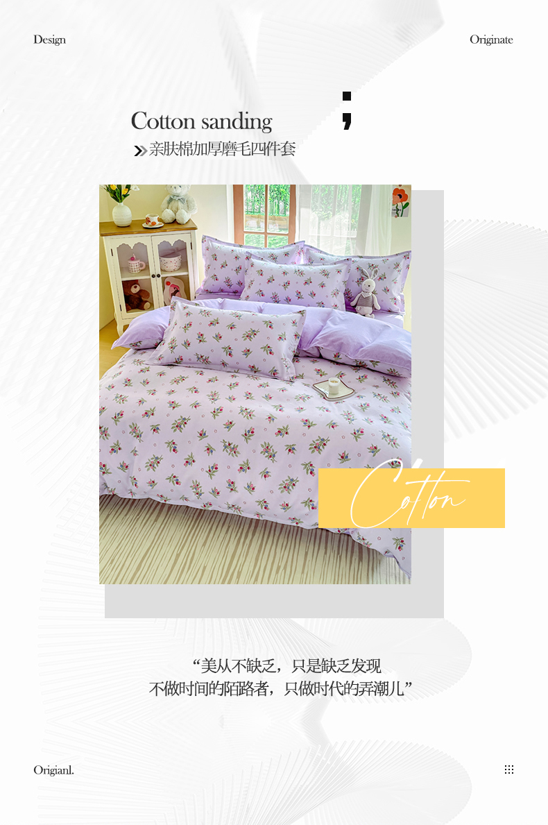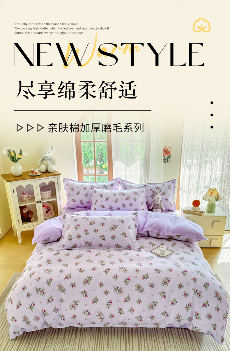 当前位置: 91家纺网 > 商品网购 > 床品套件 > 四件套 > 普通磨毛四件套 > 正莱欣 2025新品加厚生态棉磨毛四件套高克重植物羊绒床单款床笠款四件套大量现货 花舞芳菲