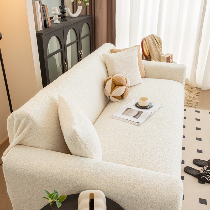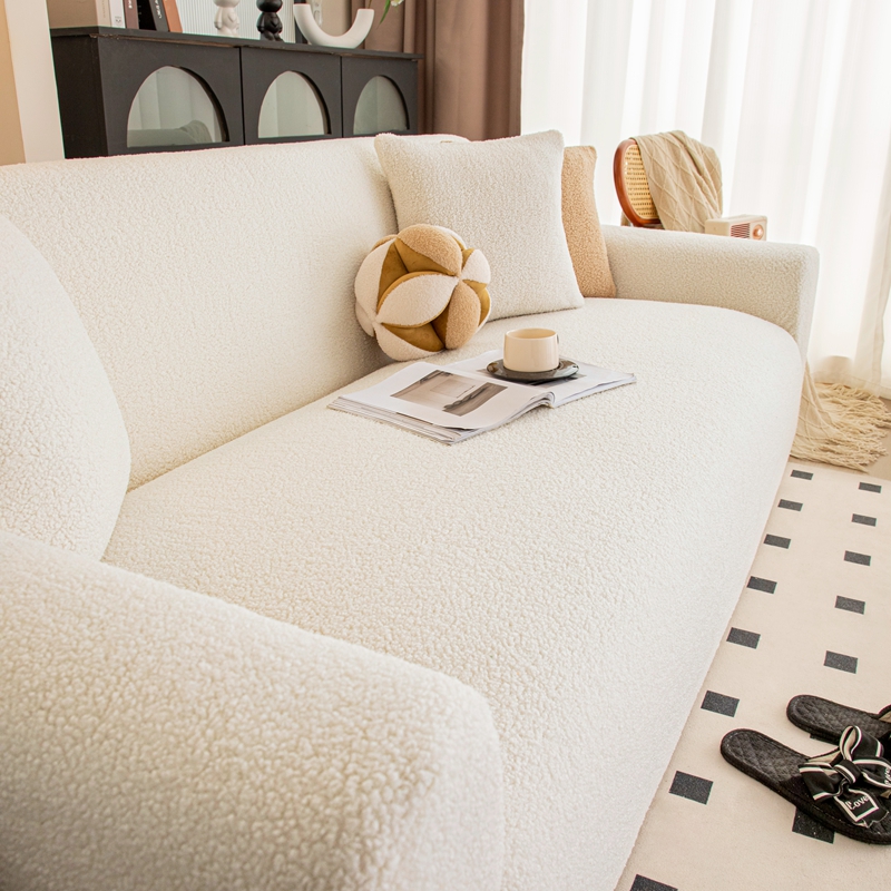 沐沐家纺 2026新款泰迪绒沙发套 米白