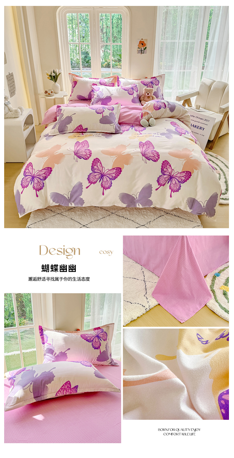 正莱欣 2025新品加厚生态棉磨毛四件套高克重植物羊绒床单款床笠款四件套大量现货 蝴蝶幽幽,蝴蝶幽幽