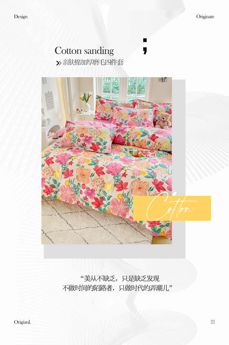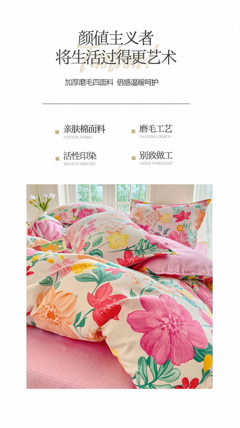 正莱欣 2025新品加厚生态棉磨毛四件套高克重植物羊绒床单款床笠款四件套大量现货 时尚乐园-米,时尚乐园-米