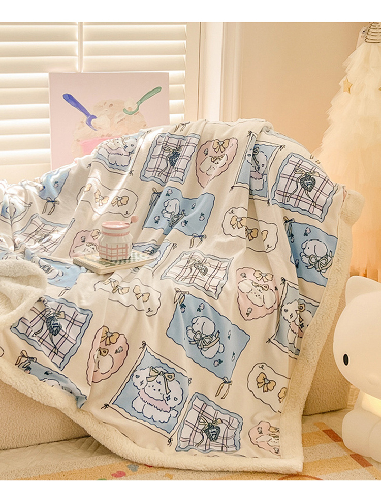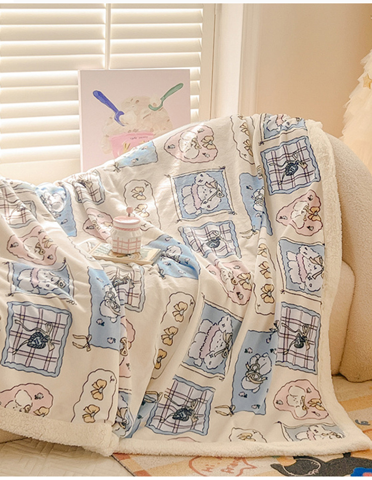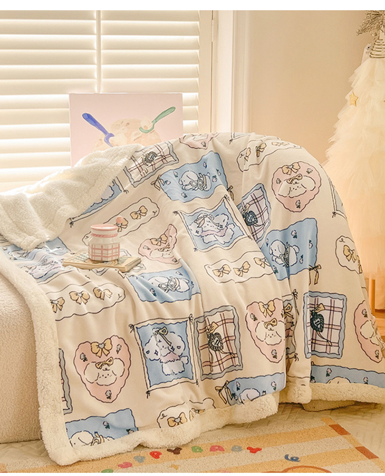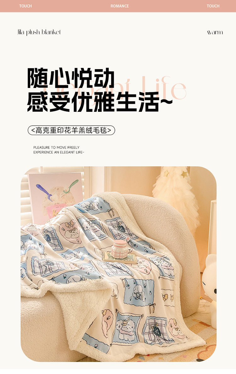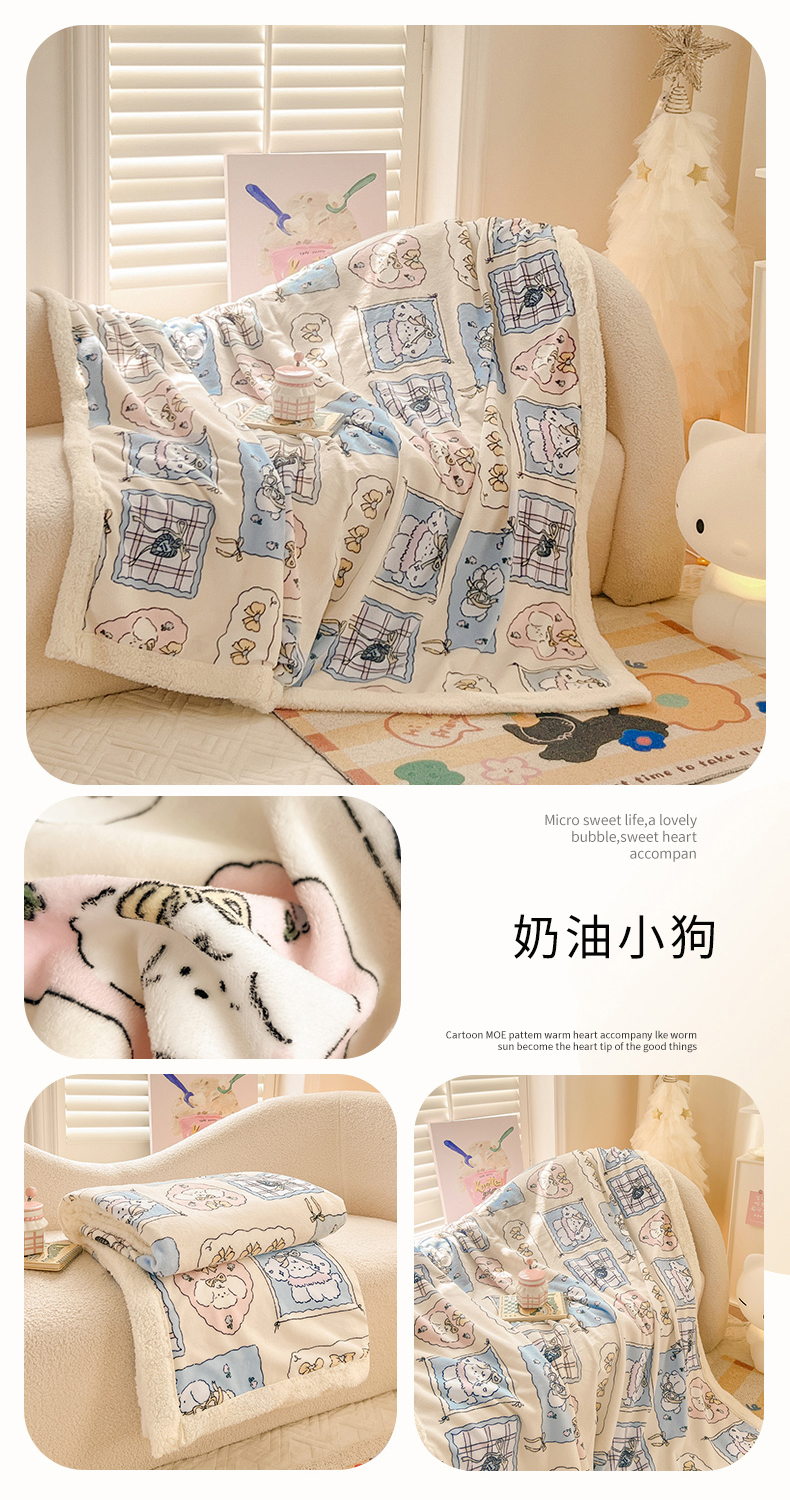 眷恋家纺 2024新款高克重牛奶绒印花羊羔绒毛毯毯子 奶油小狗