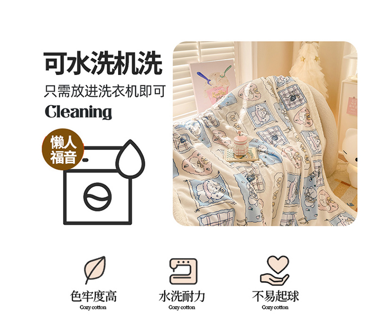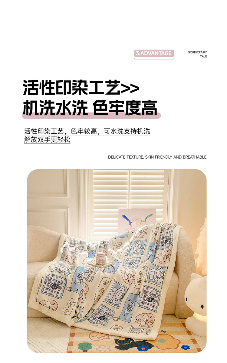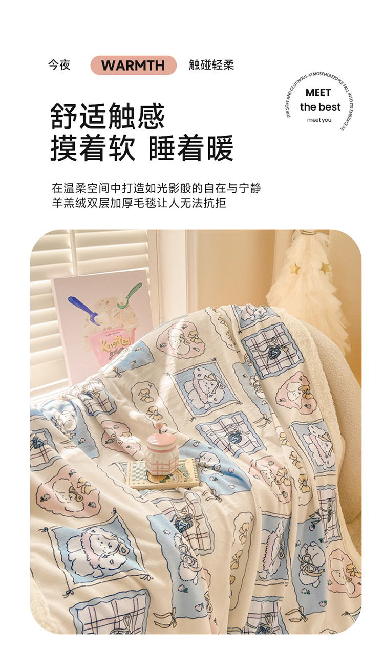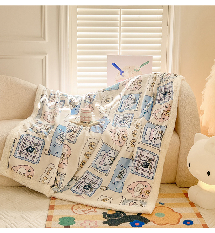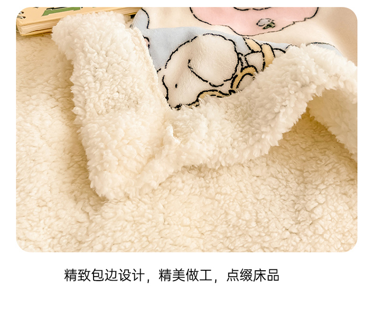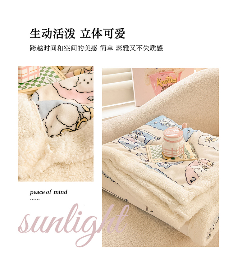 眷恋家纺 2024新款高克重牛奶绒印花羊羔绒毛毯毯子 奶油小狗