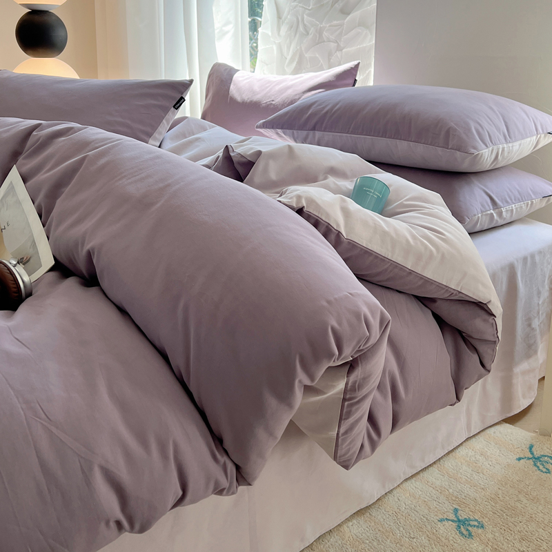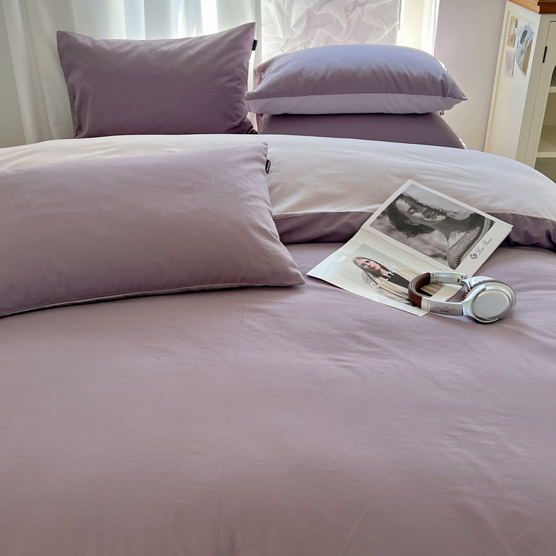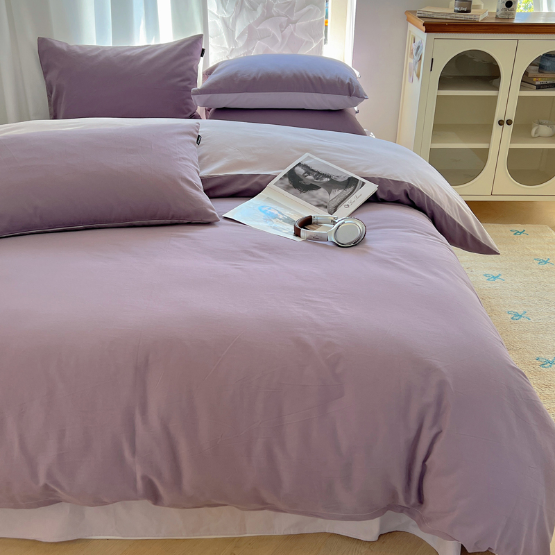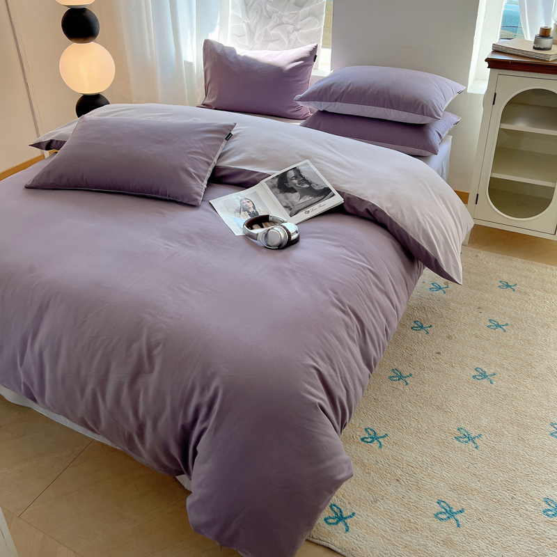 丽卡家纺(原丽卡家纺) 2024新款A类艾阳棉双拼纯色四件套 风信紫+灰紫