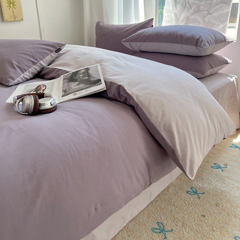 商品名称:丽卡家纺(原丽卡家纺) 2024新款A类艾阳棉双拼纯色四件套 风信紫+灰紫