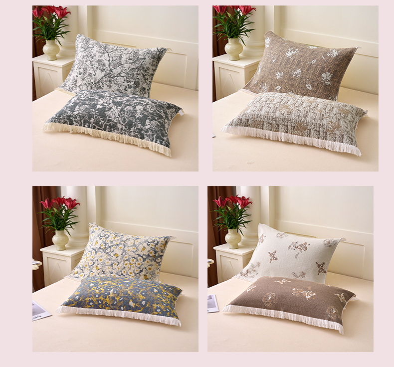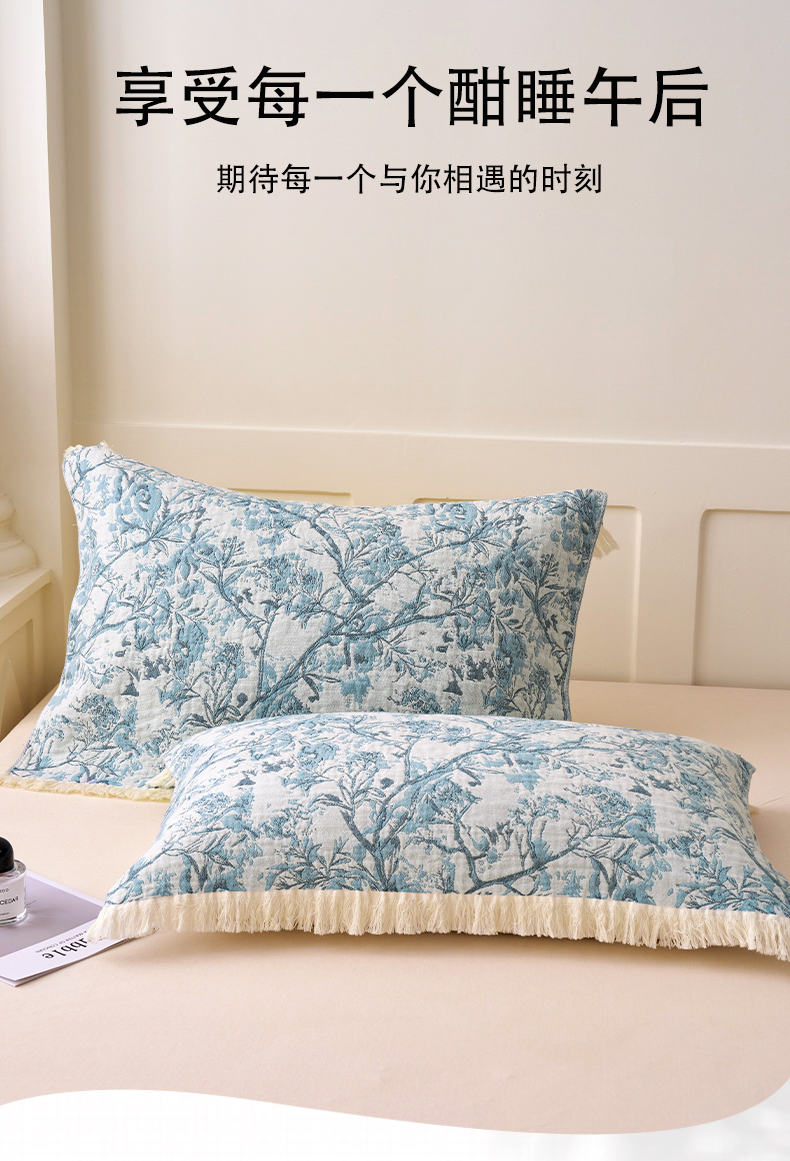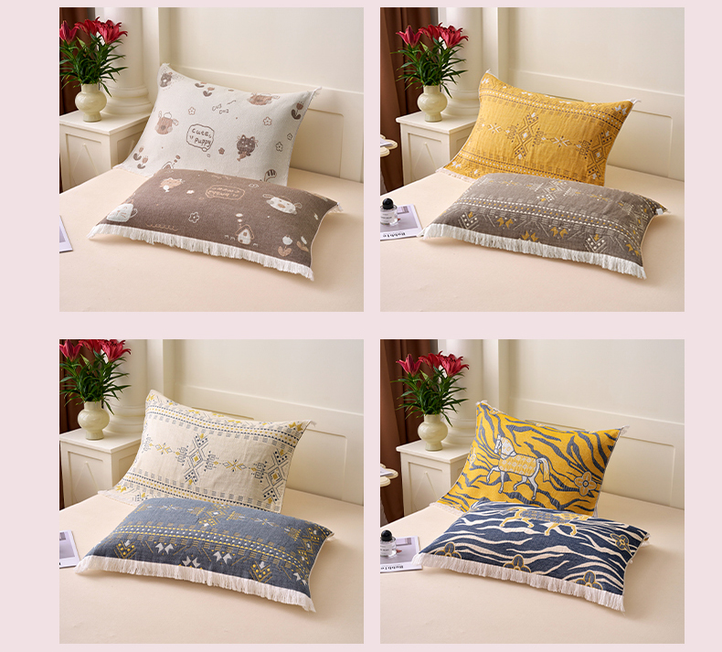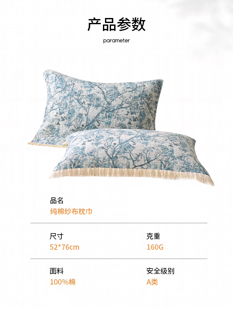 • 91家纺网 家纺一手货源 找家纺 A类抗菌母婴级全棉纯棉三层纱多功能枕巾多层纱布纱巾宽边枕巾无印风流苏纱布枕巾52x75cm/对 蝶舞花恋咖