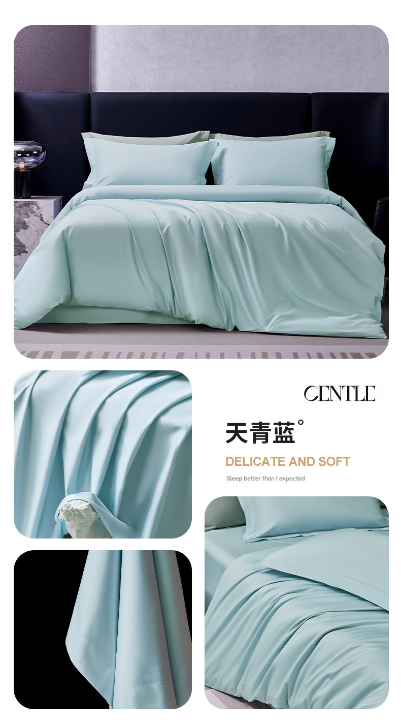 轩和家居 2024新款70S长绒棉四件套 天青蓝