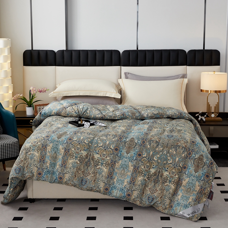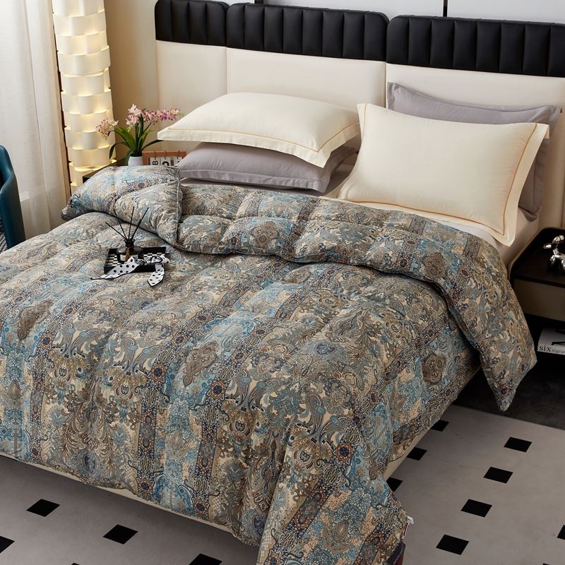 (总)御眠纺羽绒被壳 2024新品高端糯糯棉印花羽绒被鹅绒被冬被春秋被被子被芯,沐浴灰金,沐浴奶白