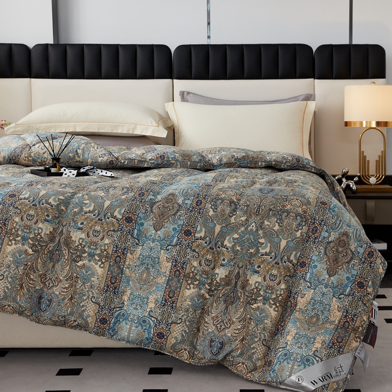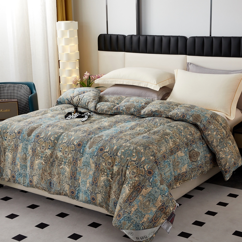(总)御眠纺羽绒被壳 2025新款糯棉印花羽绒被95白鹅绒羽绒被壳送充绒管,锦华卡其,锦华豆沙
