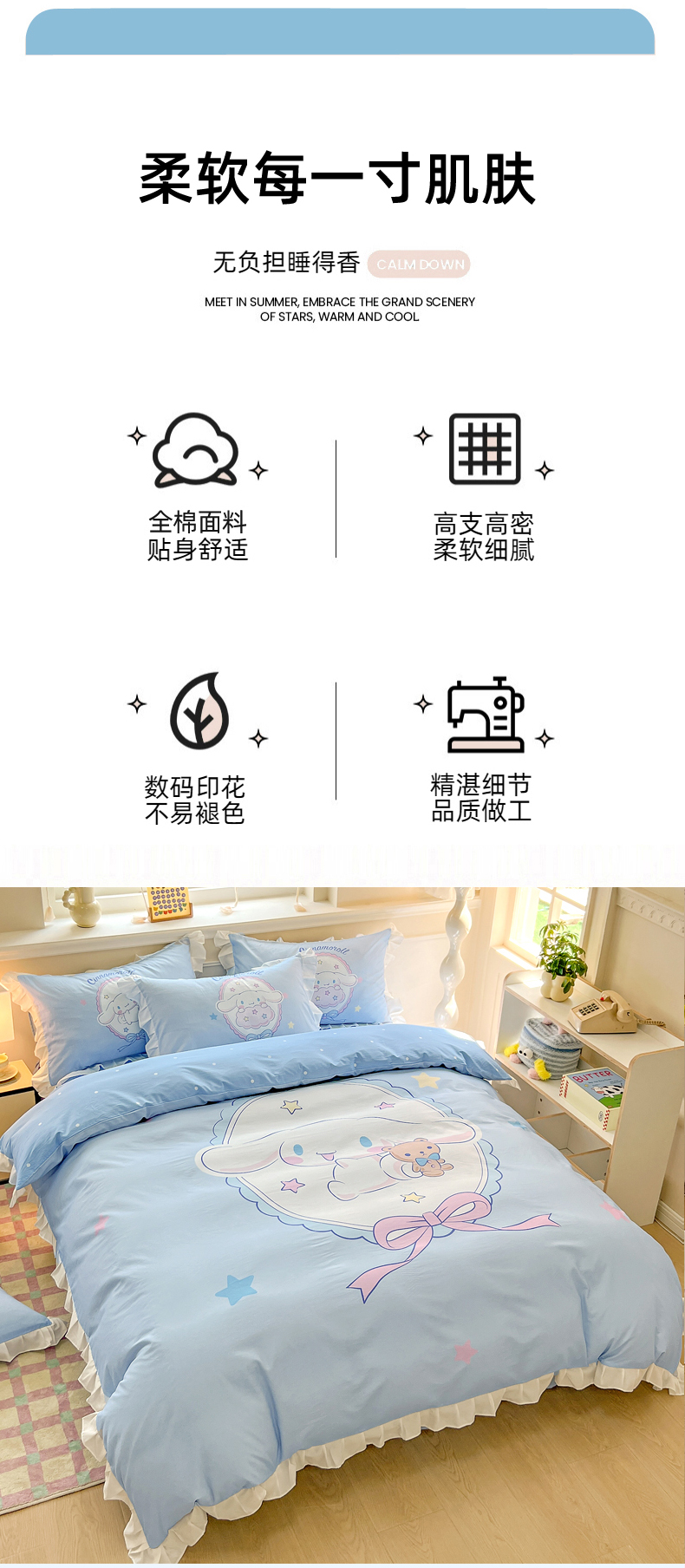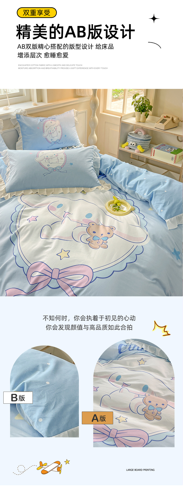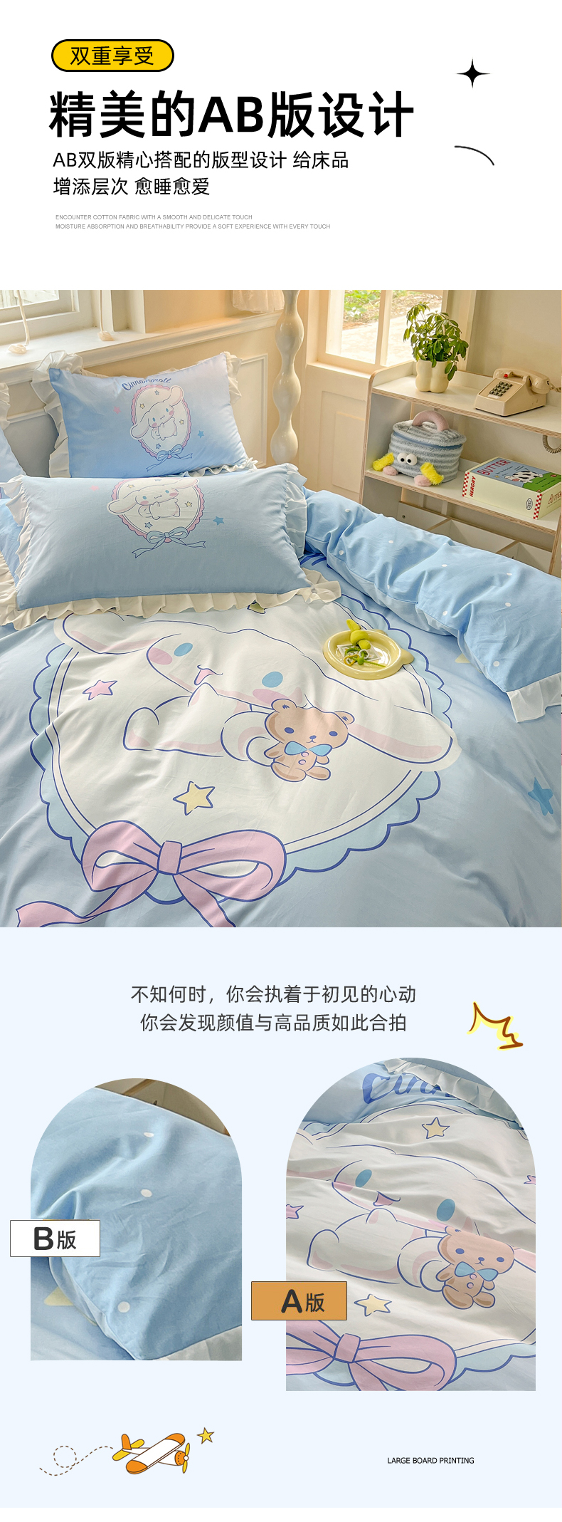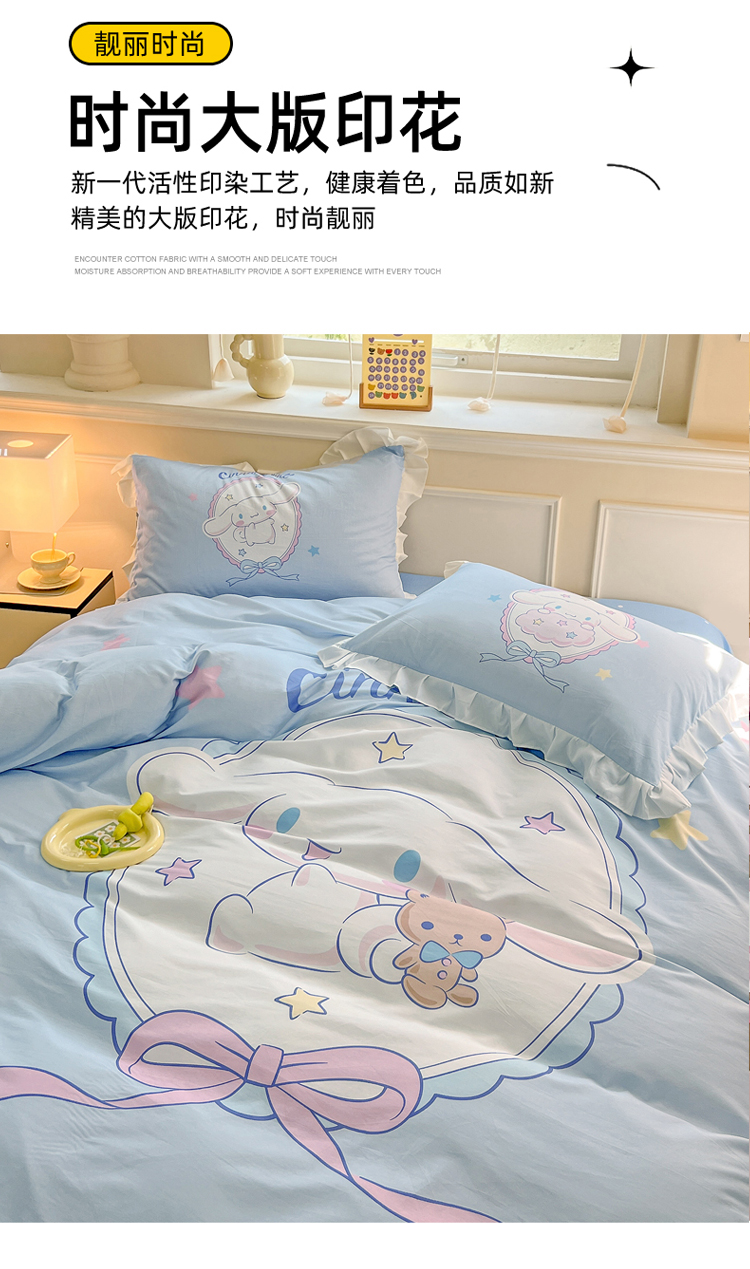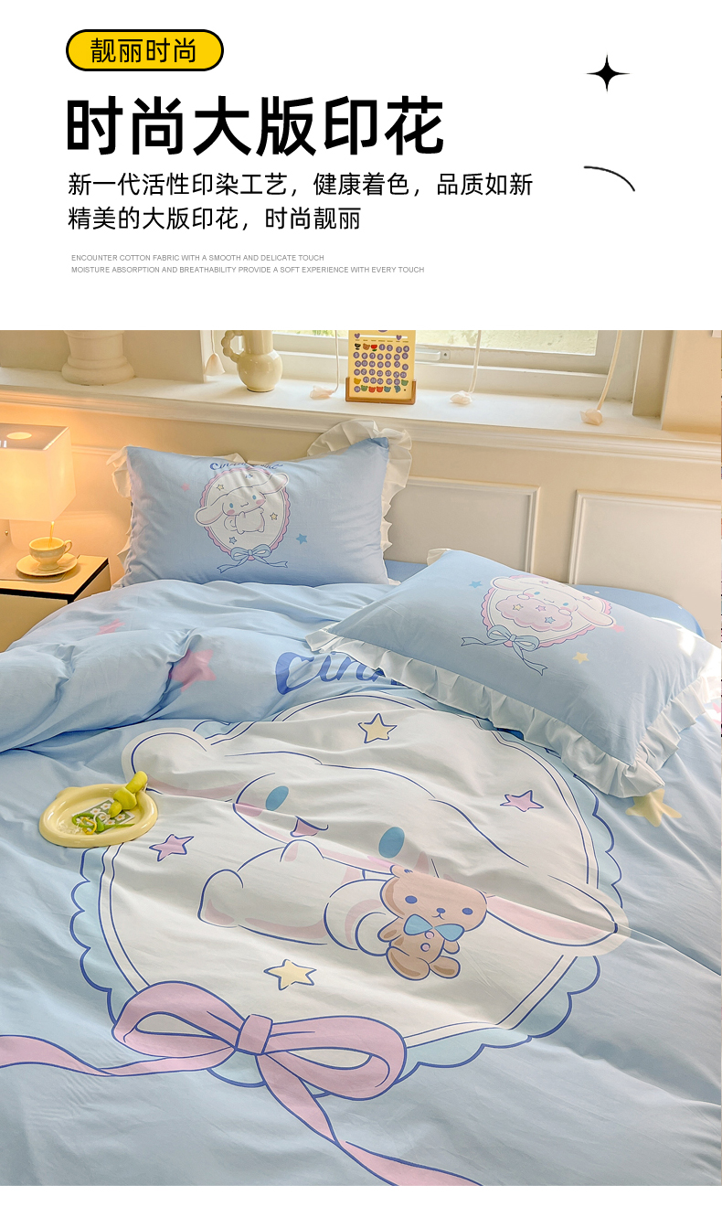 当前位置: 91家纺网 > 商品网购 > 床品套件 > 四件套 > 全棉普通四件套 > 玉元坊 2025年新款三丽鸥系列数码印花纯棉全棉床裙三件套四件套-花边款式 大耳兔