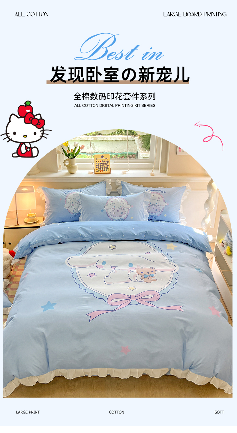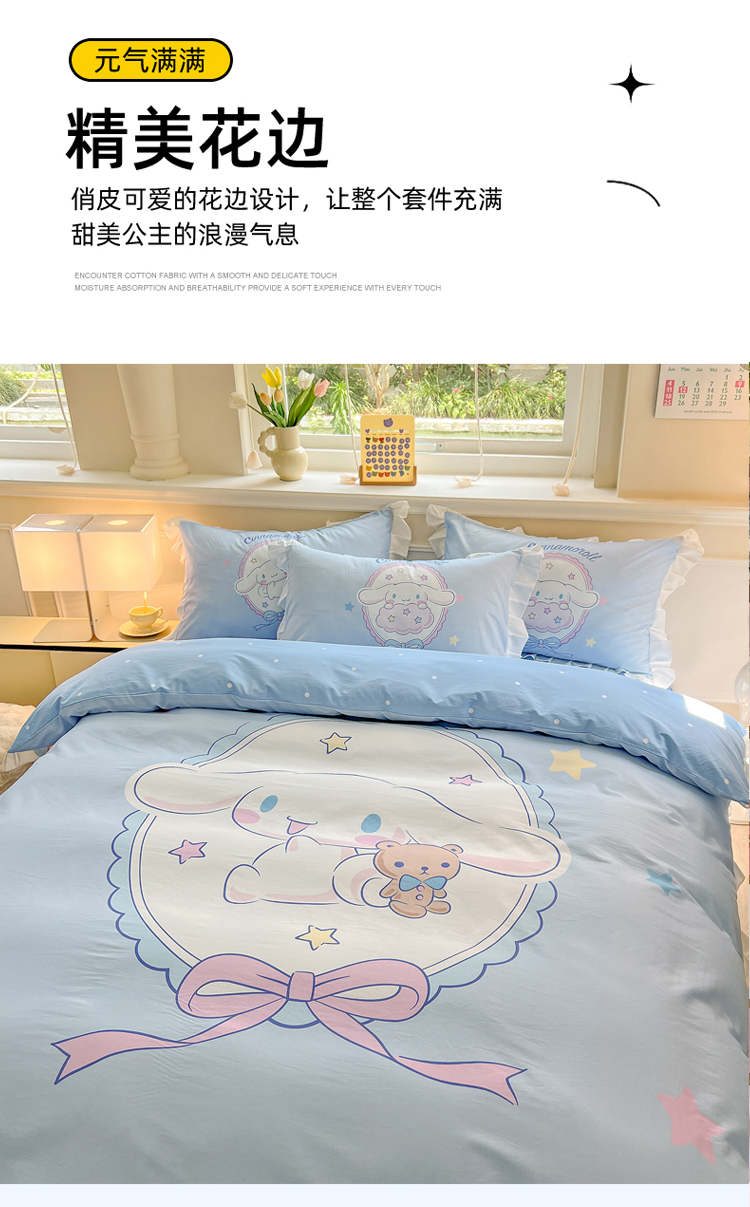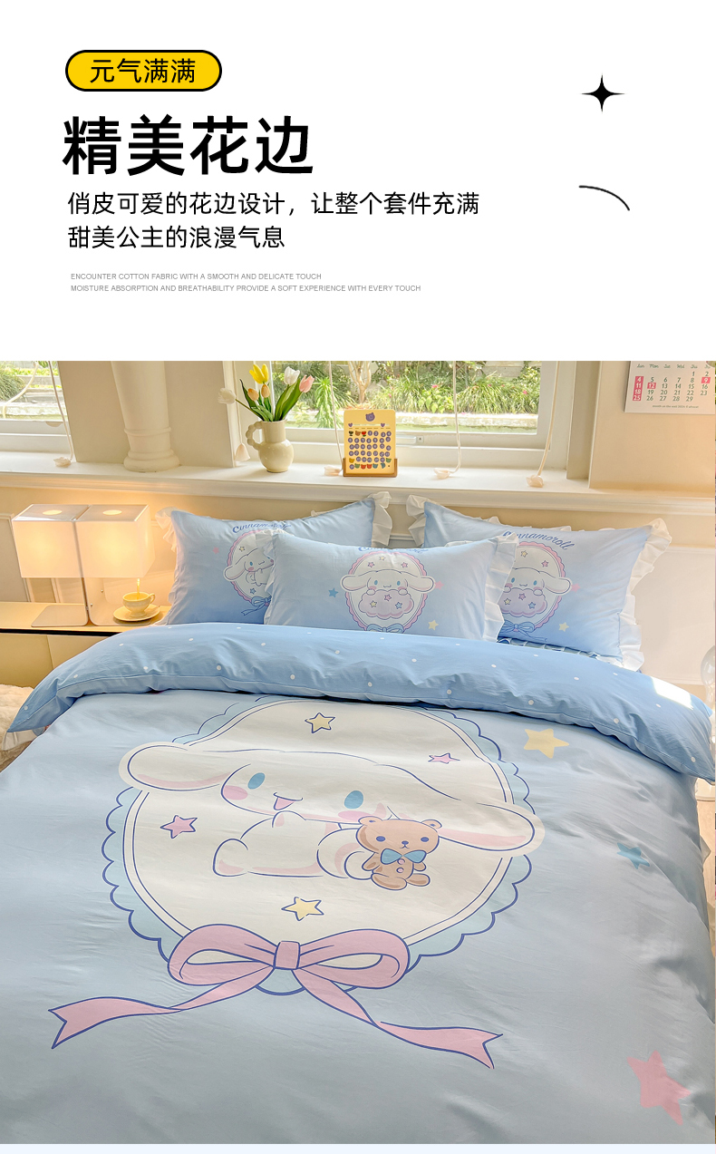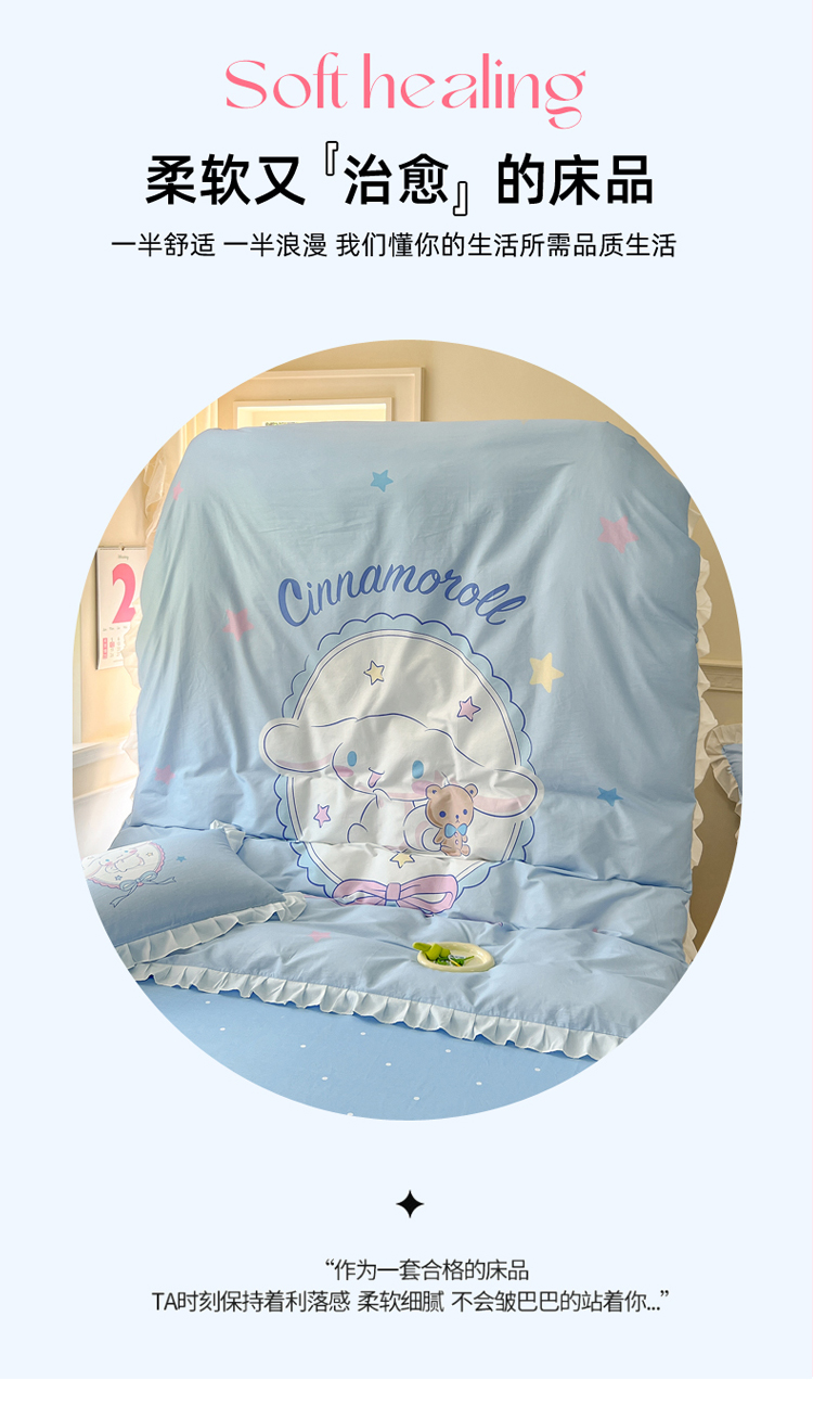 当前位置: 91家纺网 > 商品网购 > 床品套件 > 四件套 > 全棉普通四件套 > 玉元坊 2025年新款三丽鸥系列数码印花纯棉全棉床裙三件套四件套-花边款式 大耳兔