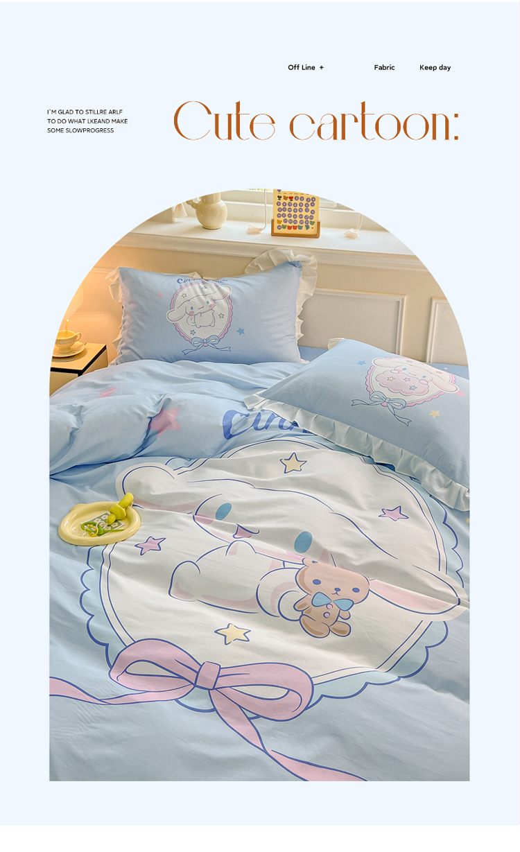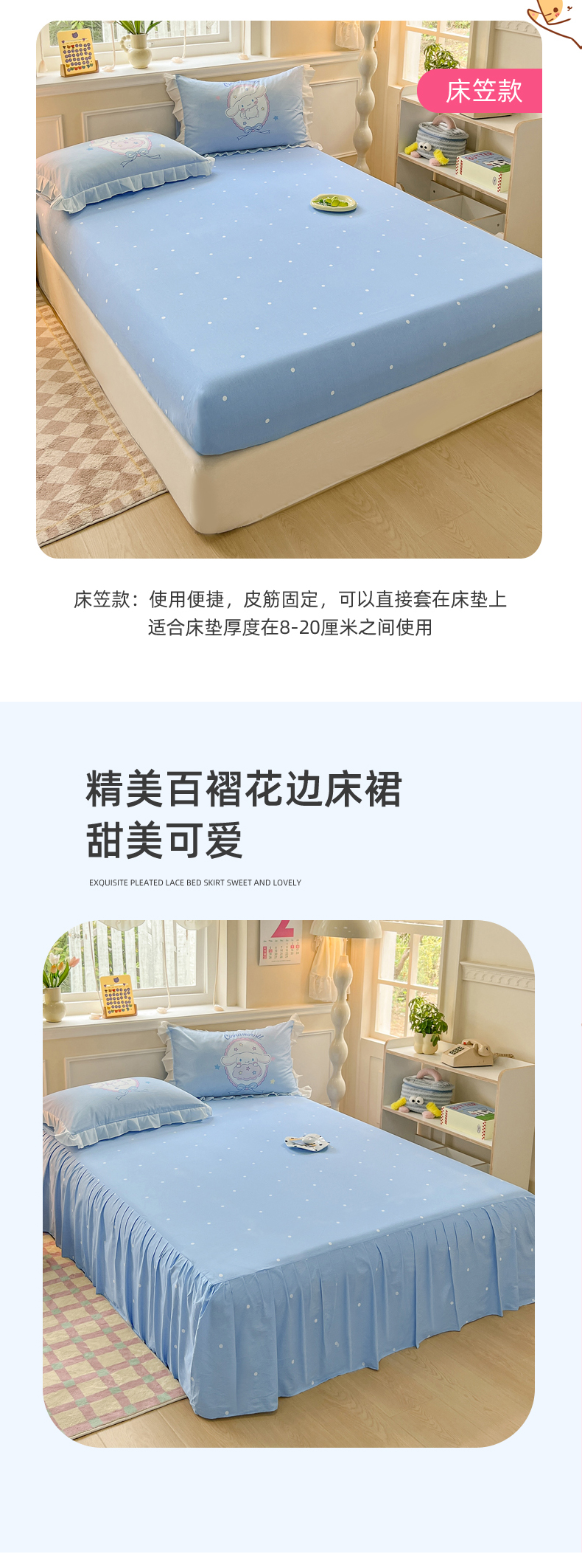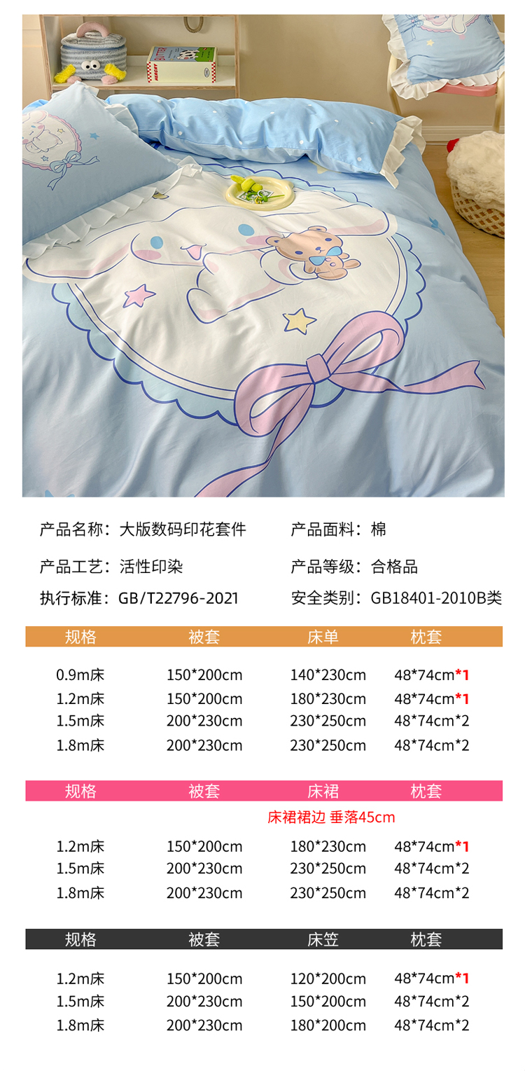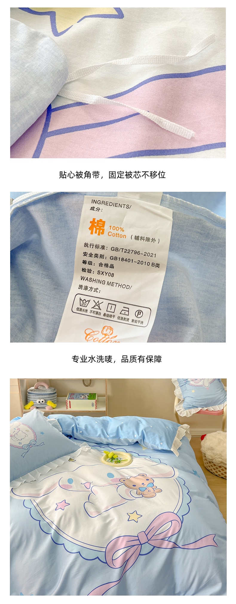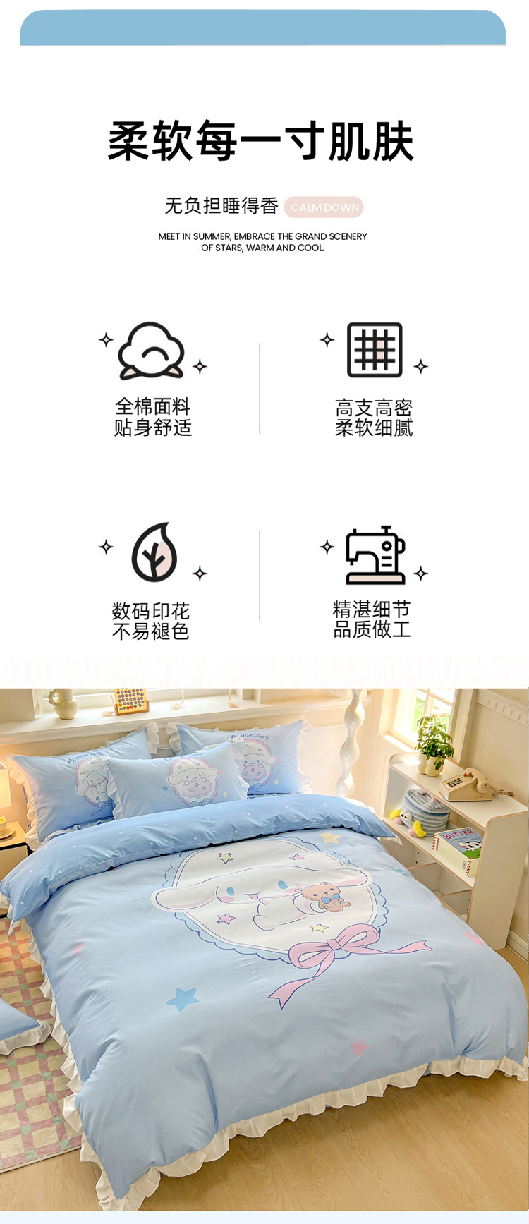 当前位置: 91家纺网 > 商品网购 > 床品套件 > 四件套 > 全棉普通四件套 > 玉元坊 2025年新款三丽鸥系列数码印花纯棉全棉床裙三件套四件套-花边款式 大耳兔
