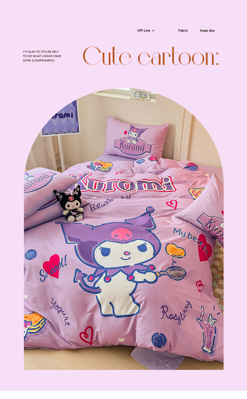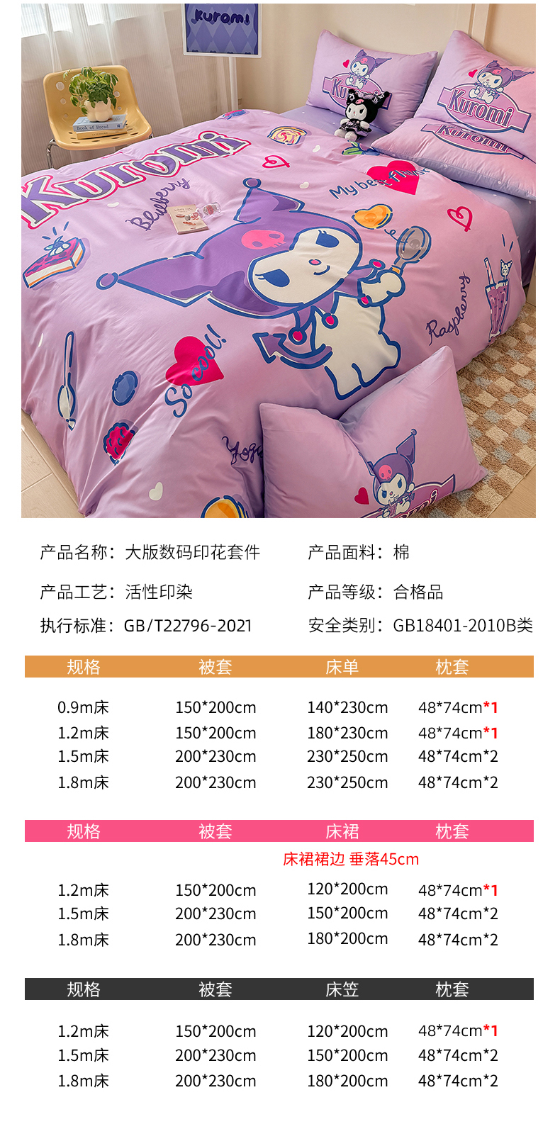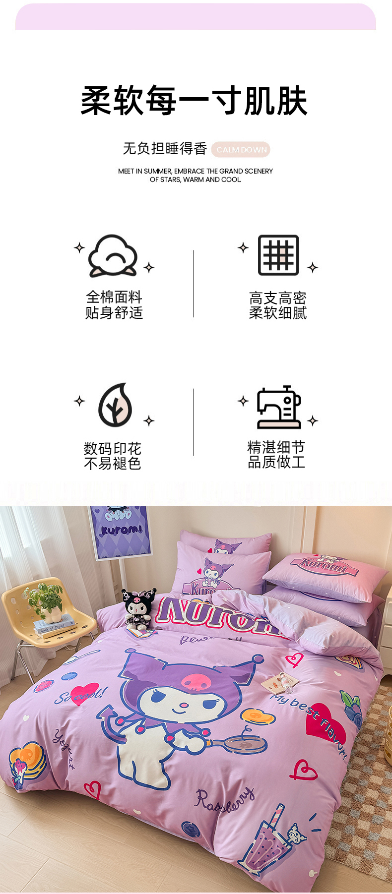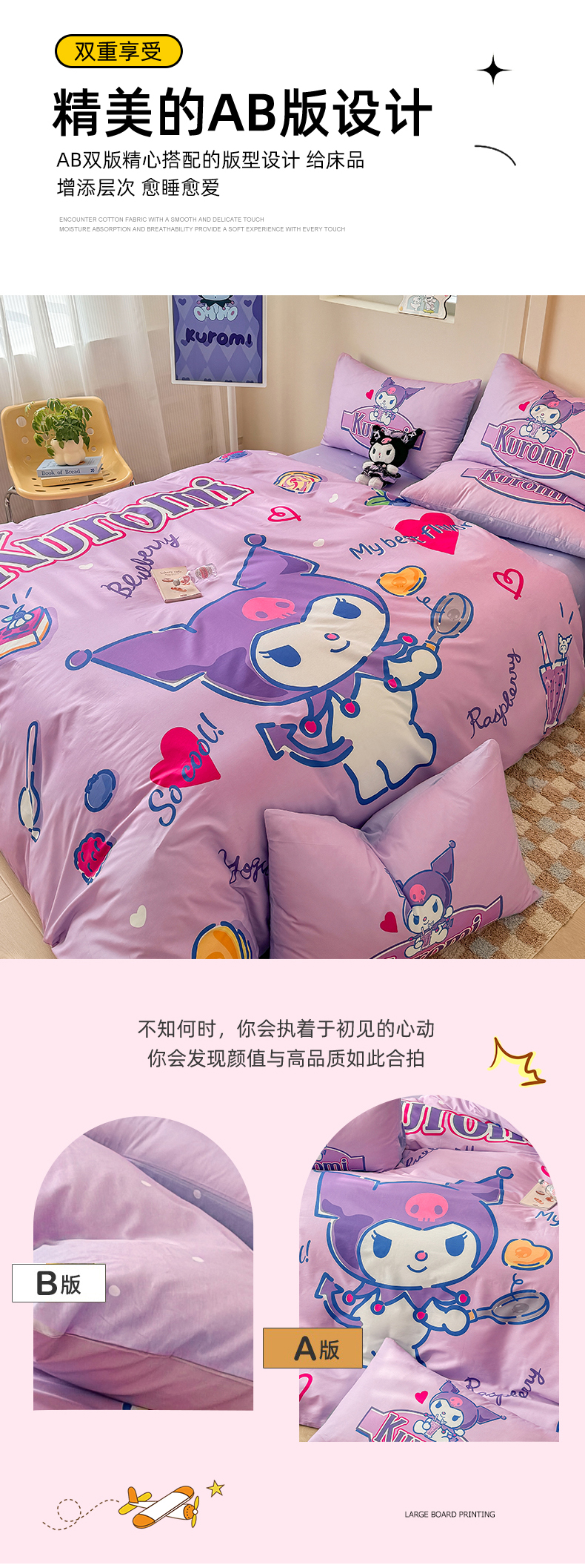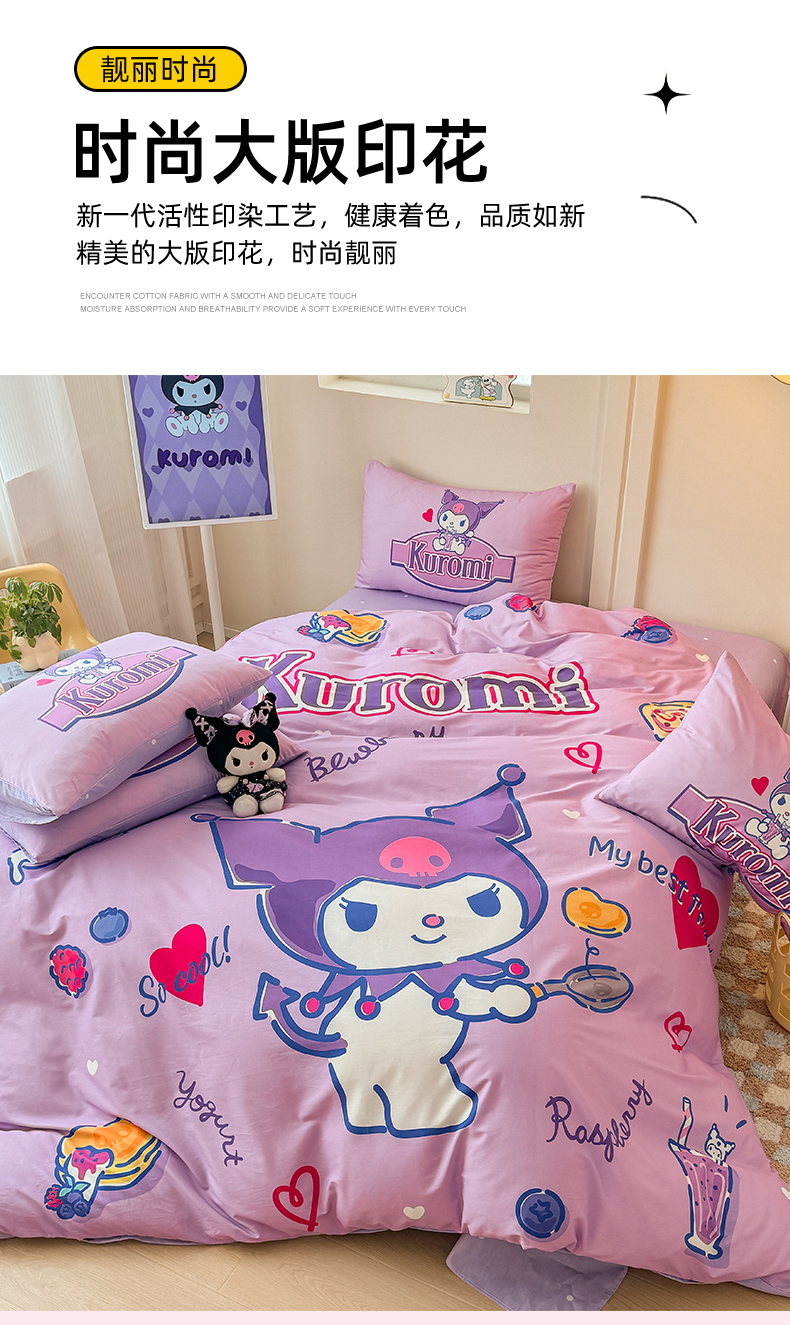 当前位置: 91家纺网 > 商品网购 > 床品套件 > 四件套 > 全棉普通四件套 > 玉元坊 2025年新款三丽鸥系列数码印花纯棉全棉床裙三件套四件套-简约基础款 大版简约-蓝莓库洛米