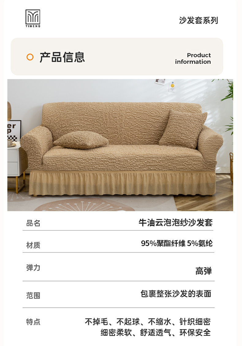 商品名称:(总)布兰鸟【沙发套】 2025新款奶油云沙发套【国内裙摆款】风格1