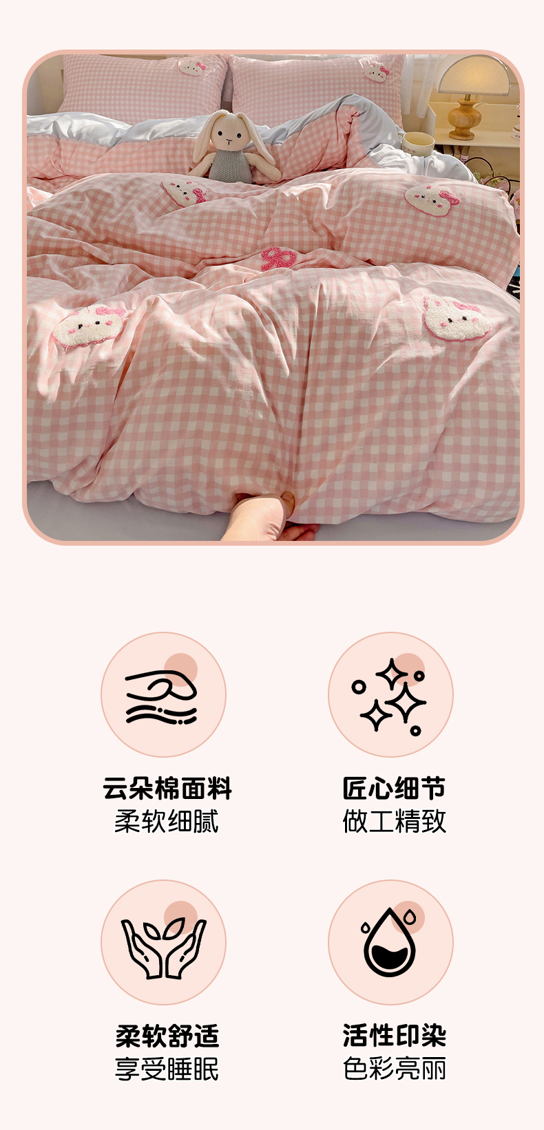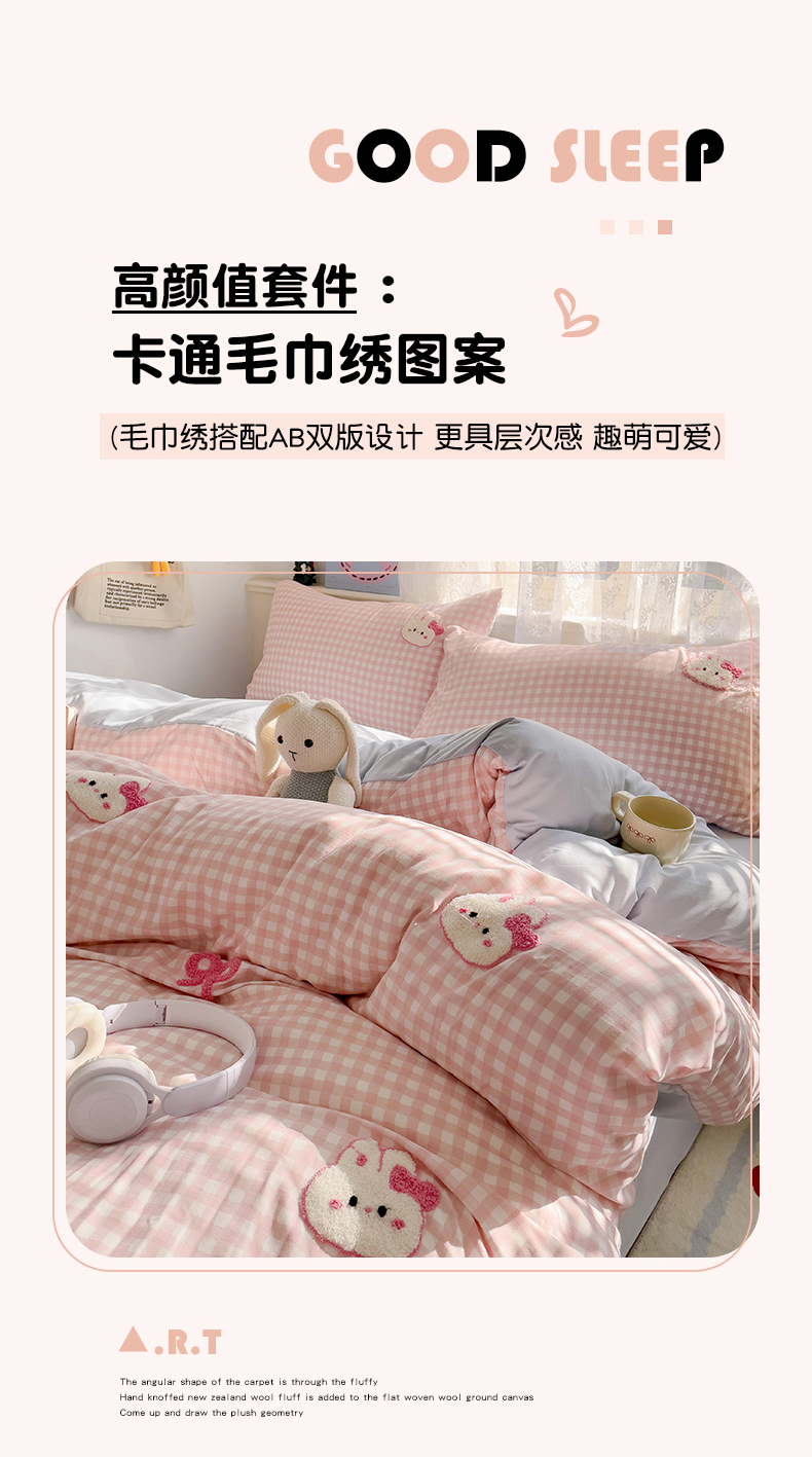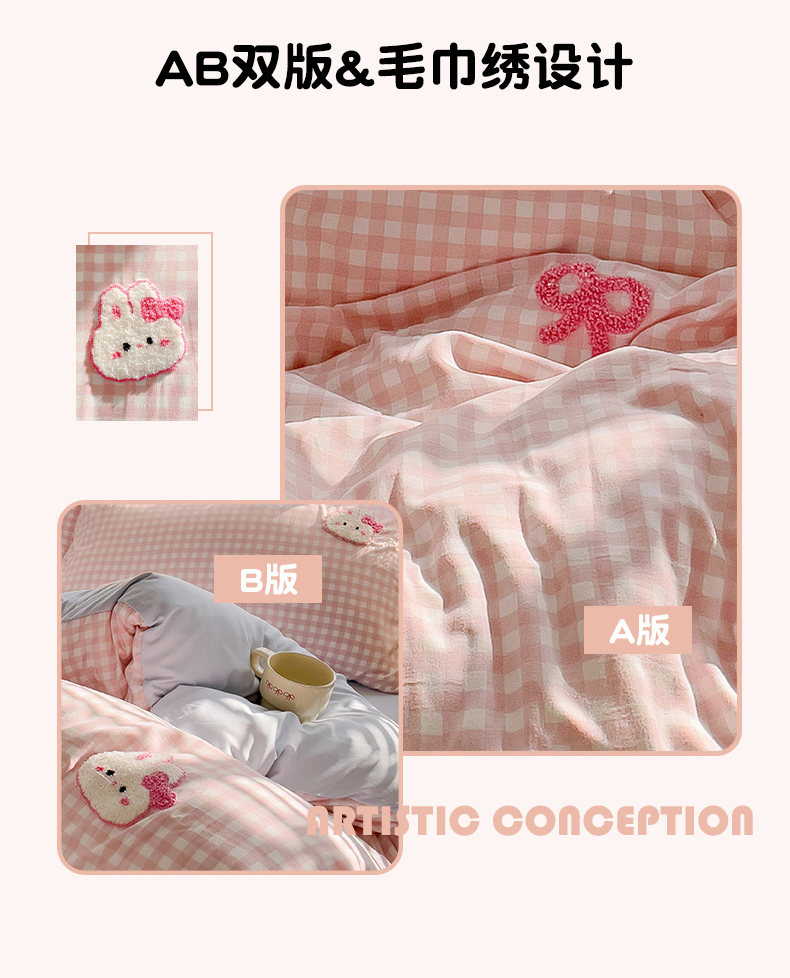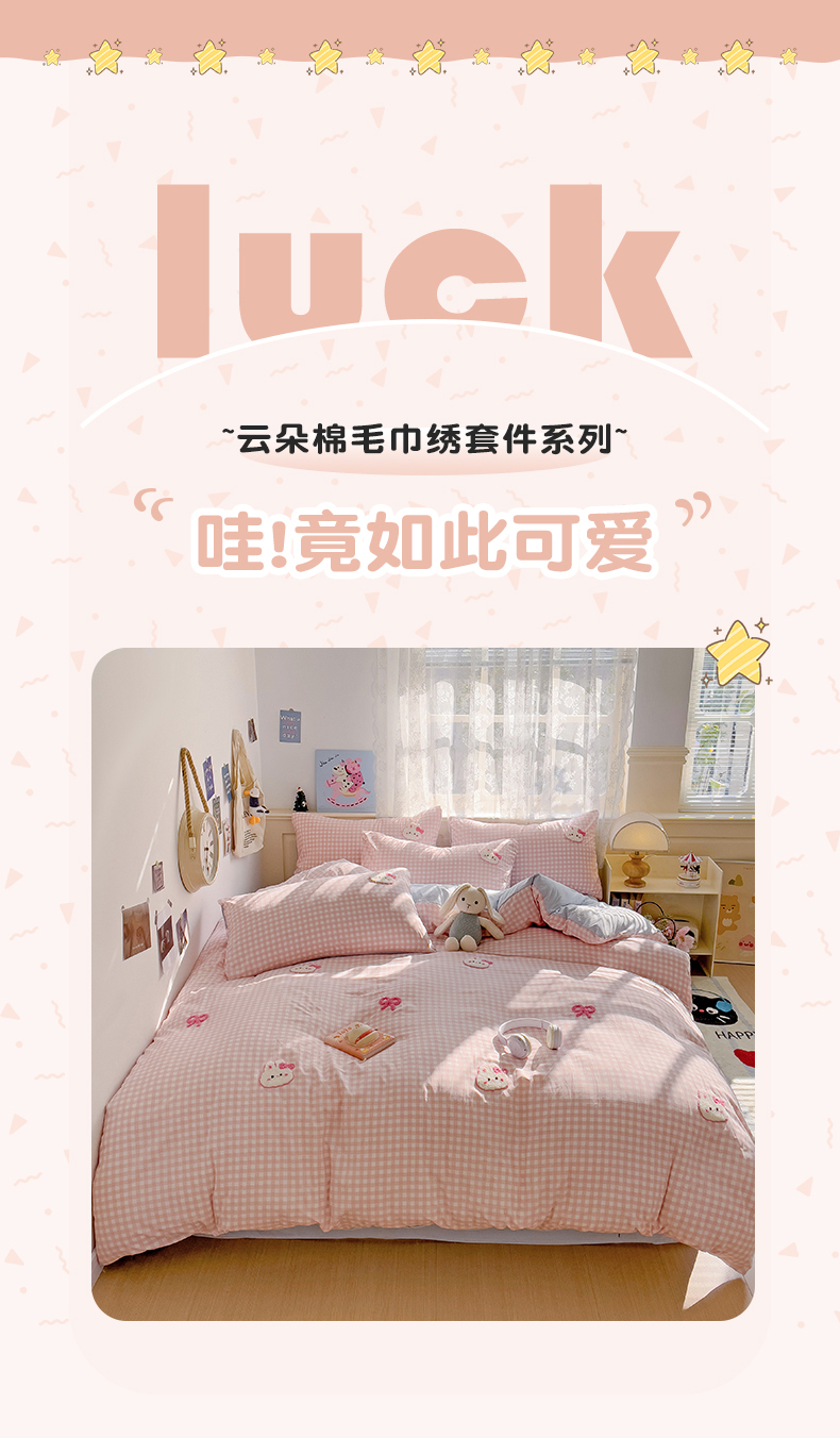 当前位置: 91家纺网 > 商品网购 > 床品套件 > 四件套 > 其它四件套 > 梦之岛 2025云朵棉ins格子小兔可爱毛巾绣四件套 格子小兔-粉