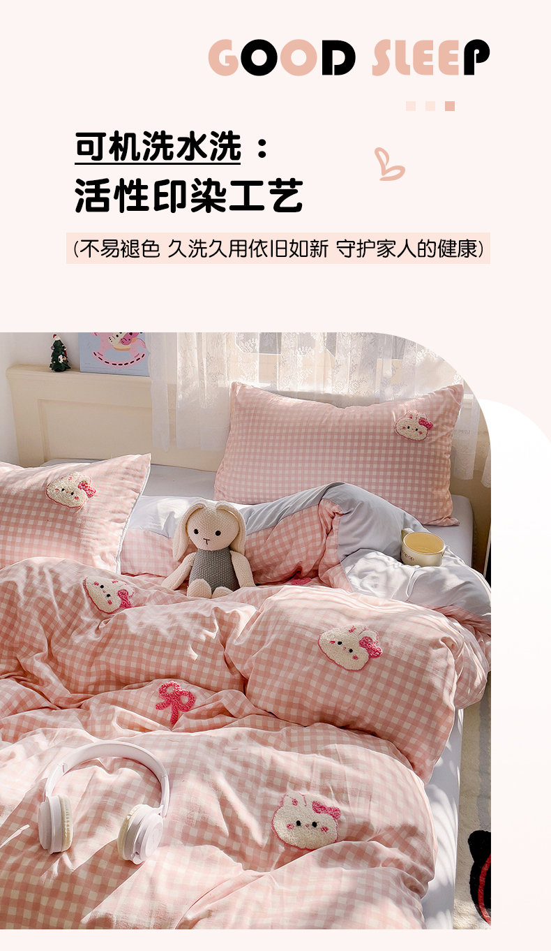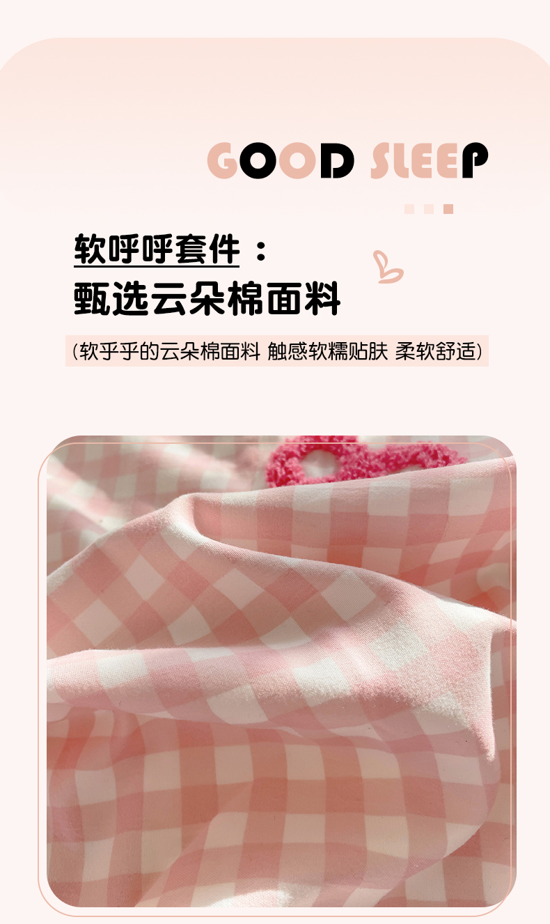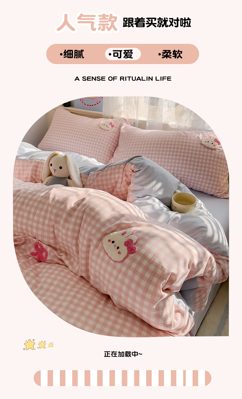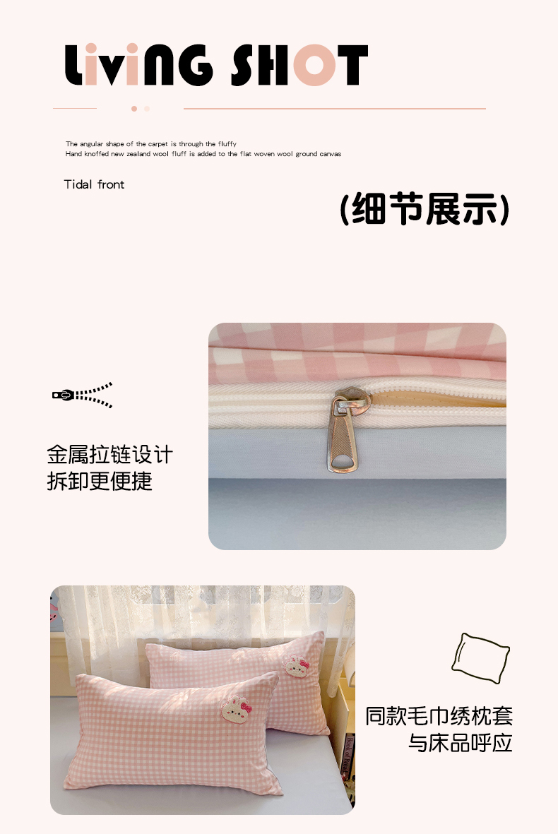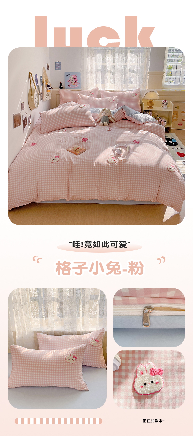 当前位置: 91家纺网 > 商品网购 > 床品套件 > 四件套 > 其它四件套 > 梦之岛 2025云朵棉ins格子小兔可爱毛巾绣四件套 格子小兔-粉