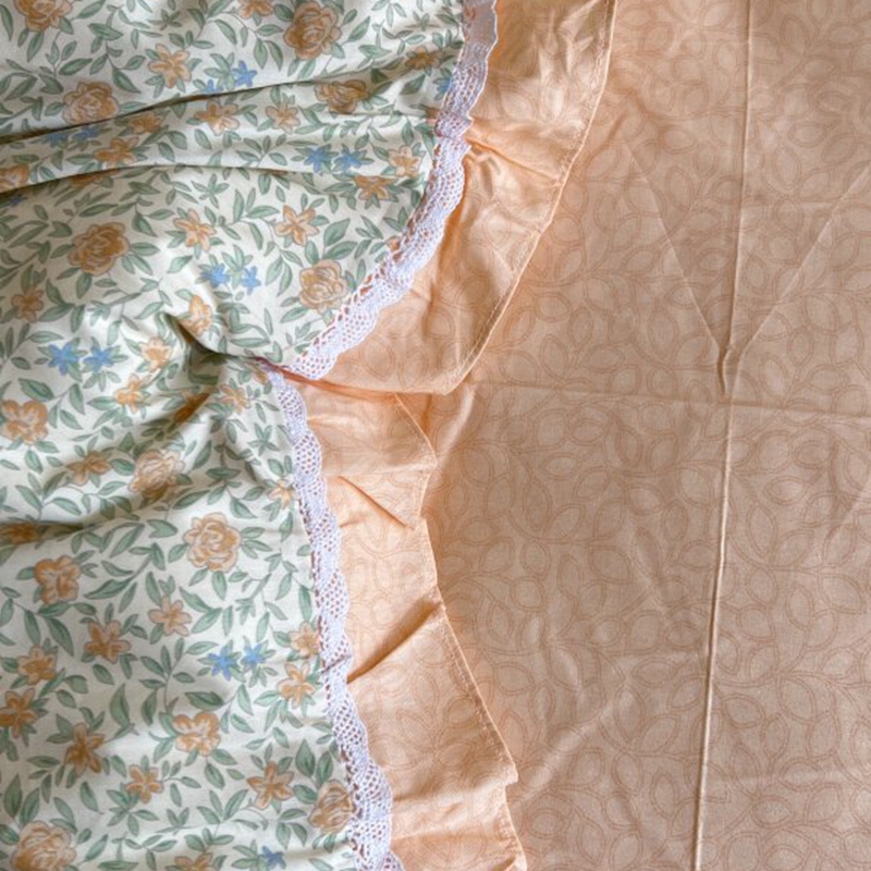 商品名称:棉生活家纺 2025新款全棉小清新花边款蕾丝四件套 花晓
