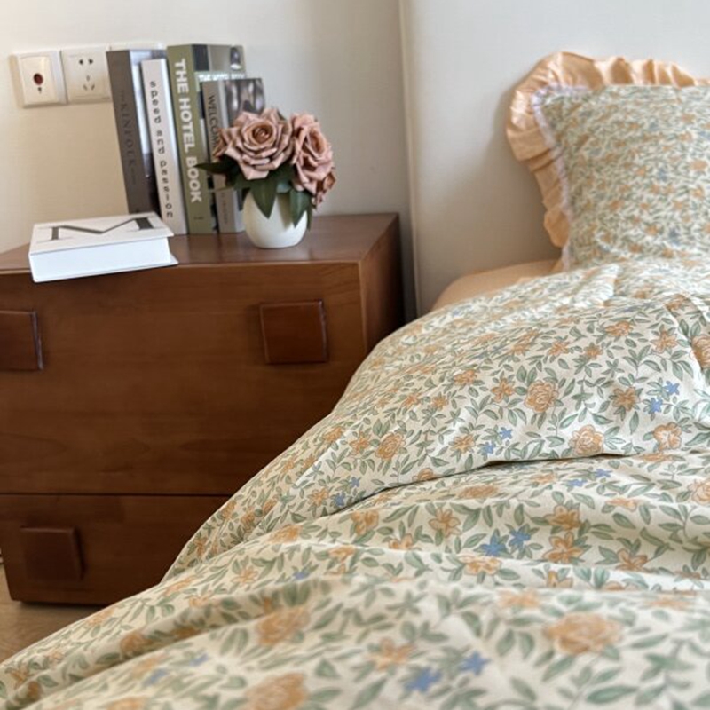棉生活家纺 2025新款全棉小清新花边款蕾丝四件套 花晓