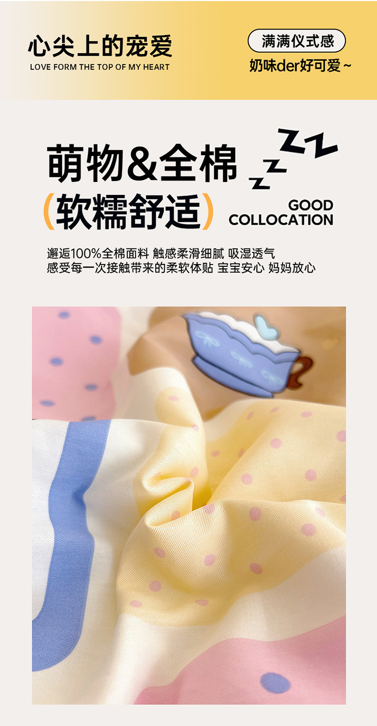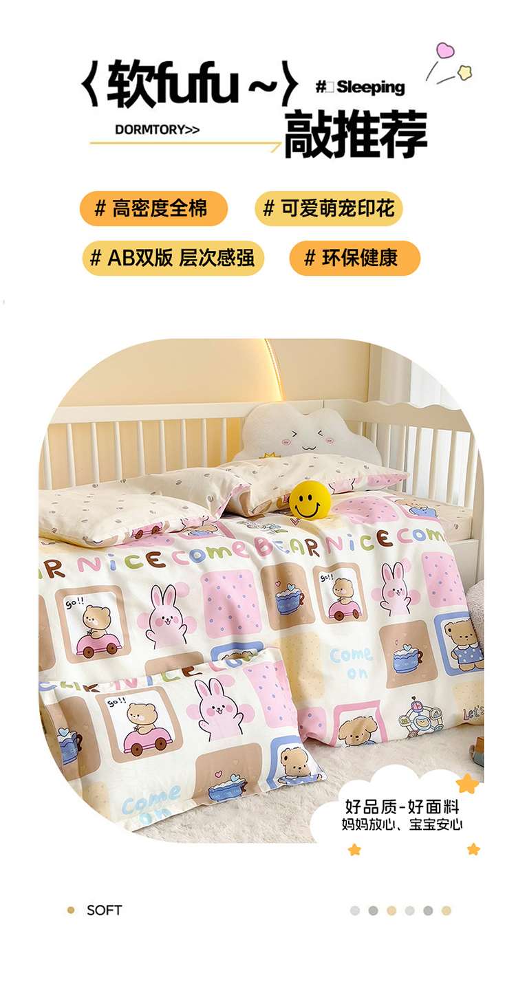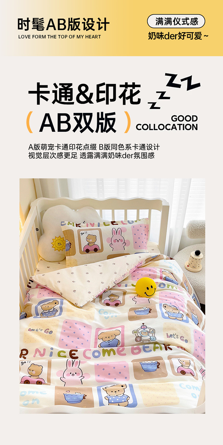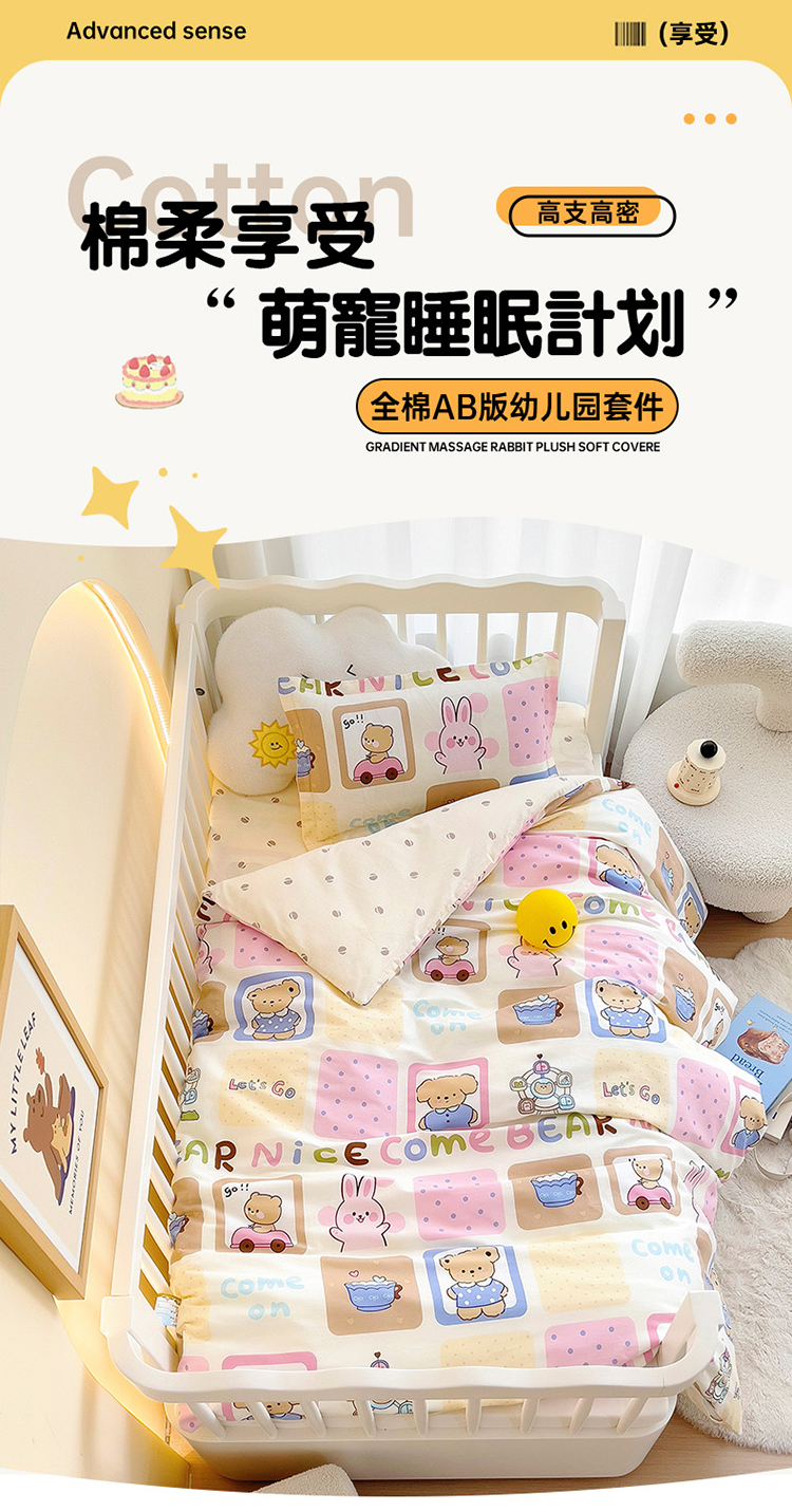 当前位置: 91家纺网 > 商品网购 > 婴童用品 > 婴童床品套件 > 2025新款全棉AB版幼儿园三件套宝宝午睡被子六件套儿童被套多件套 甜蜜时光