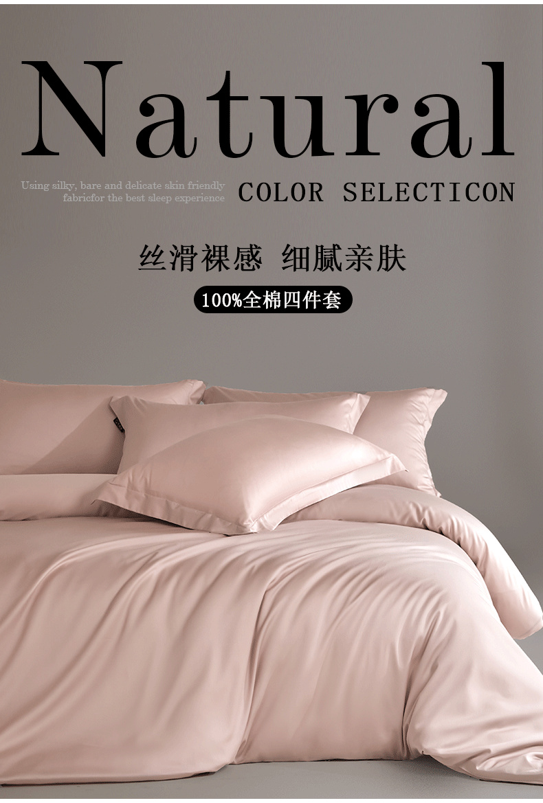 618家纺 2025新款50S100支全棉四件套 虾粉