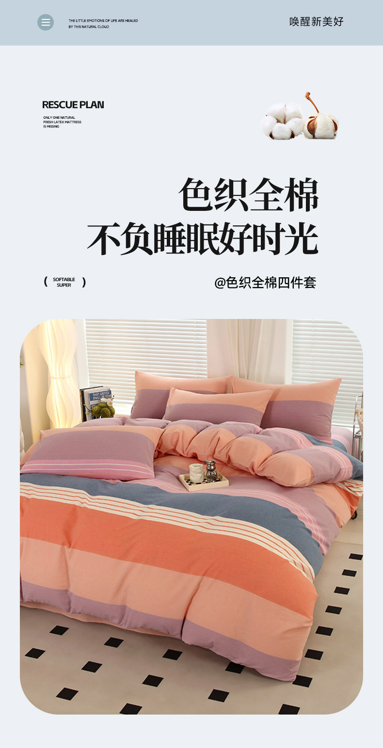 商品名称:金纱玉纺家纺 2024新款全棉水洗棉四件套迪雅斯-桔