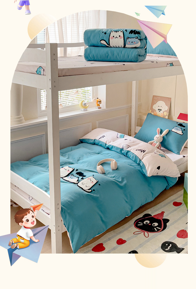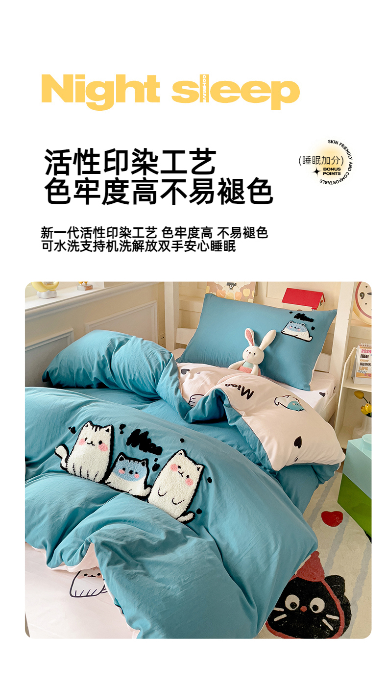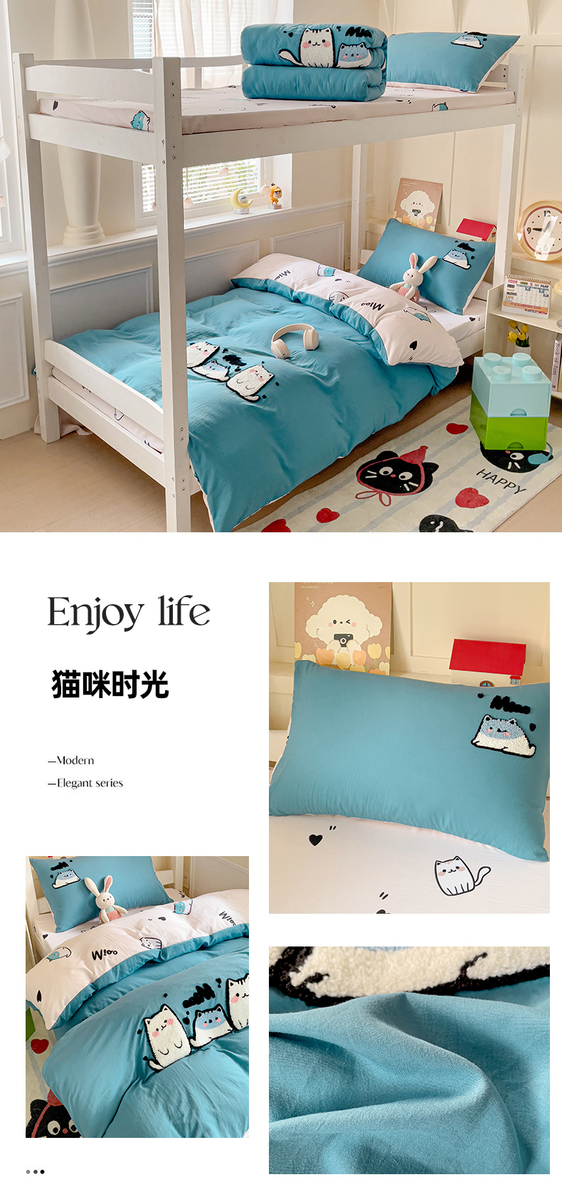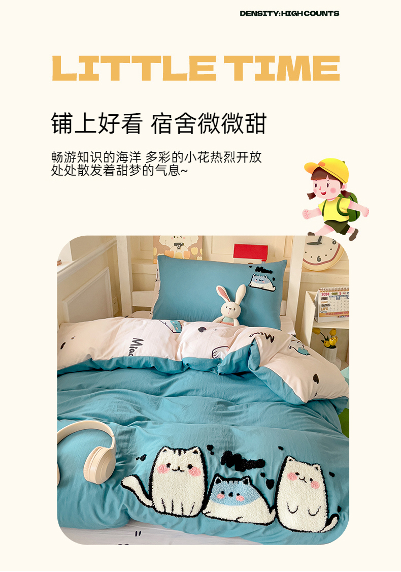 当前位置: 91家纺网 > 商品网购 > 床品套件 > 四件套 > 毛巾绣四件套 > 凯洛奇 2025新款1卡通水洗棉印+绣毛巾绣四件套(学生床)【提供买家秀】 猫咪时光