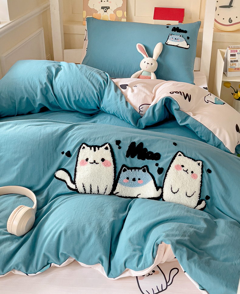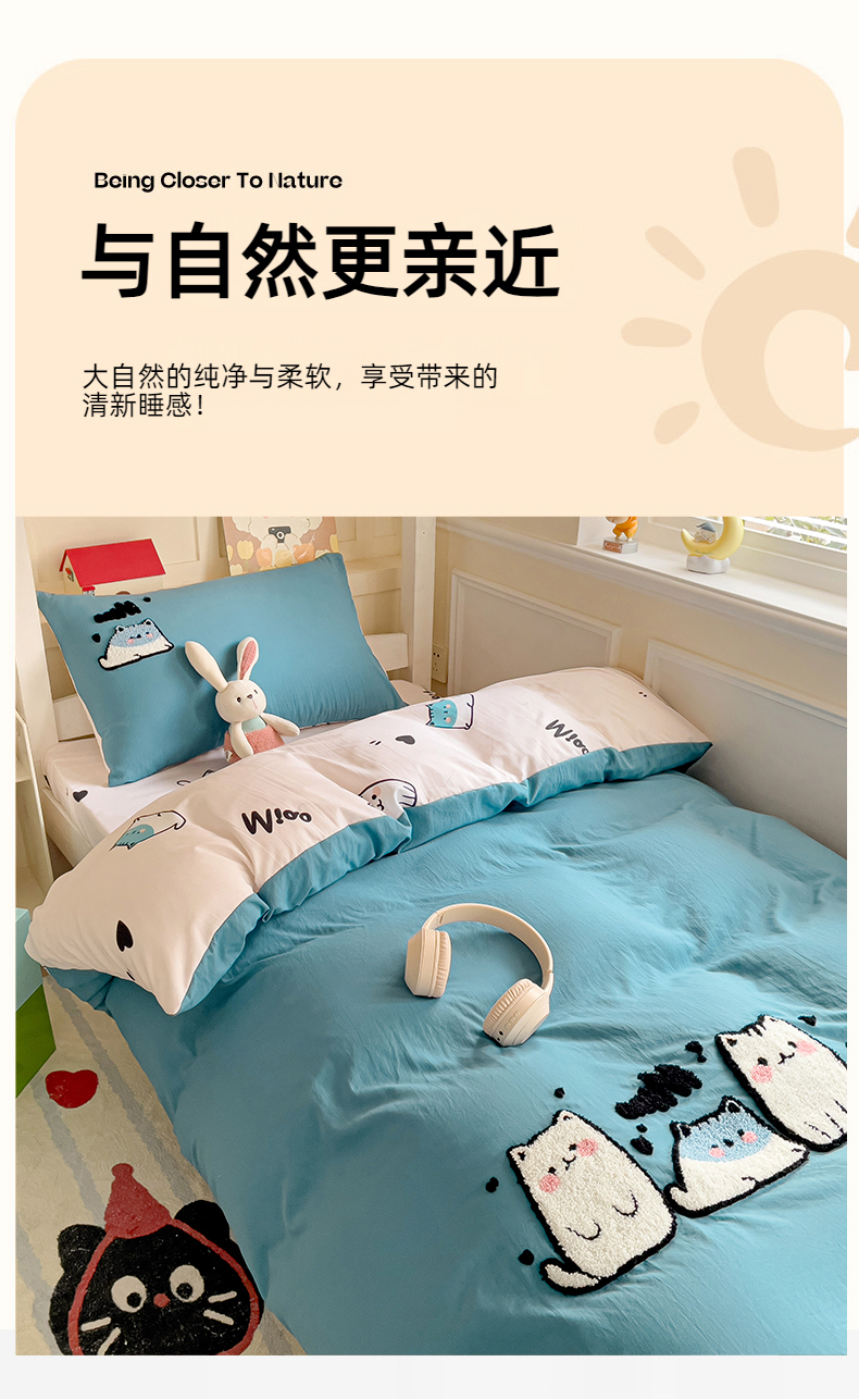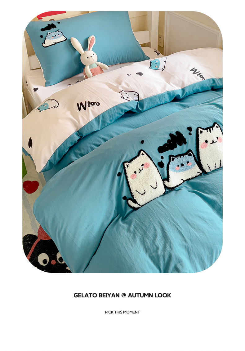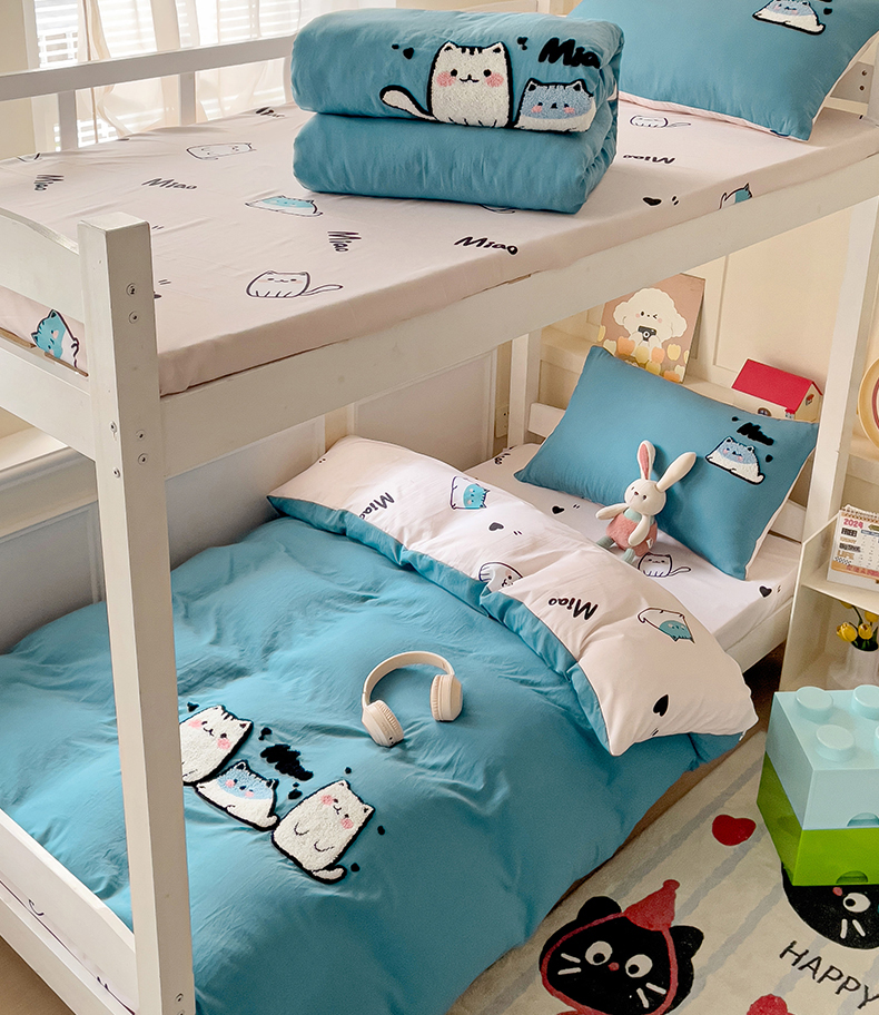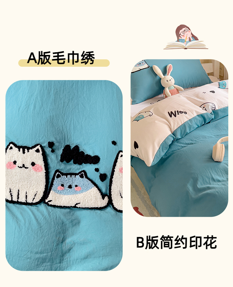 当前位置: 91家纺网 > 商品网购 > 床品套件 > 四件套 > 毛巾绣四件套 > 凯洛奇 2025新款1卡通水洗棉印+绣毛巾绣四件套(学生床)【提供买家秀】 猫咪时光