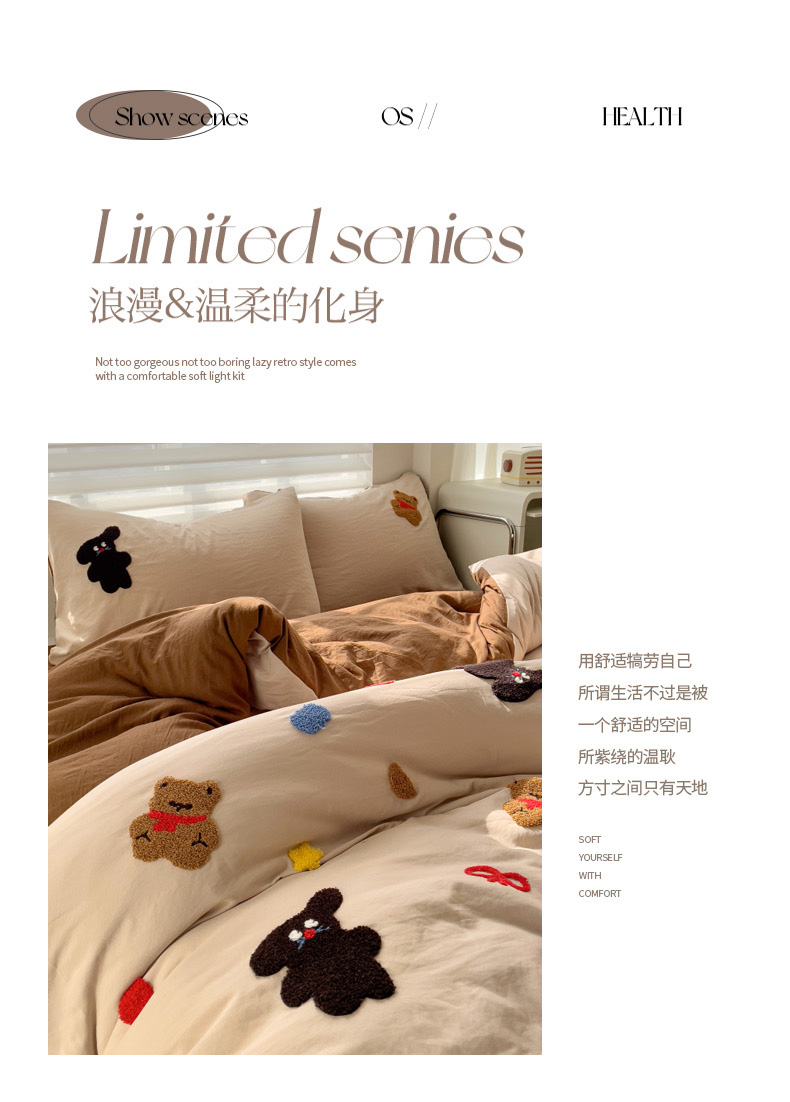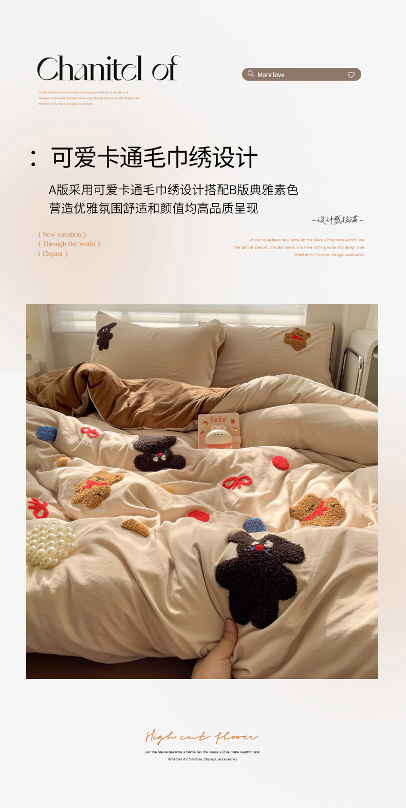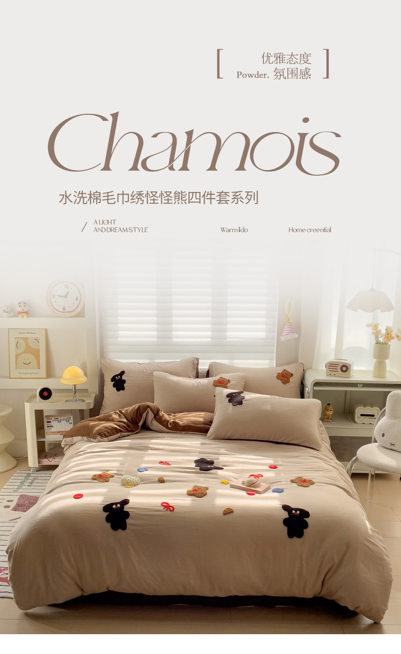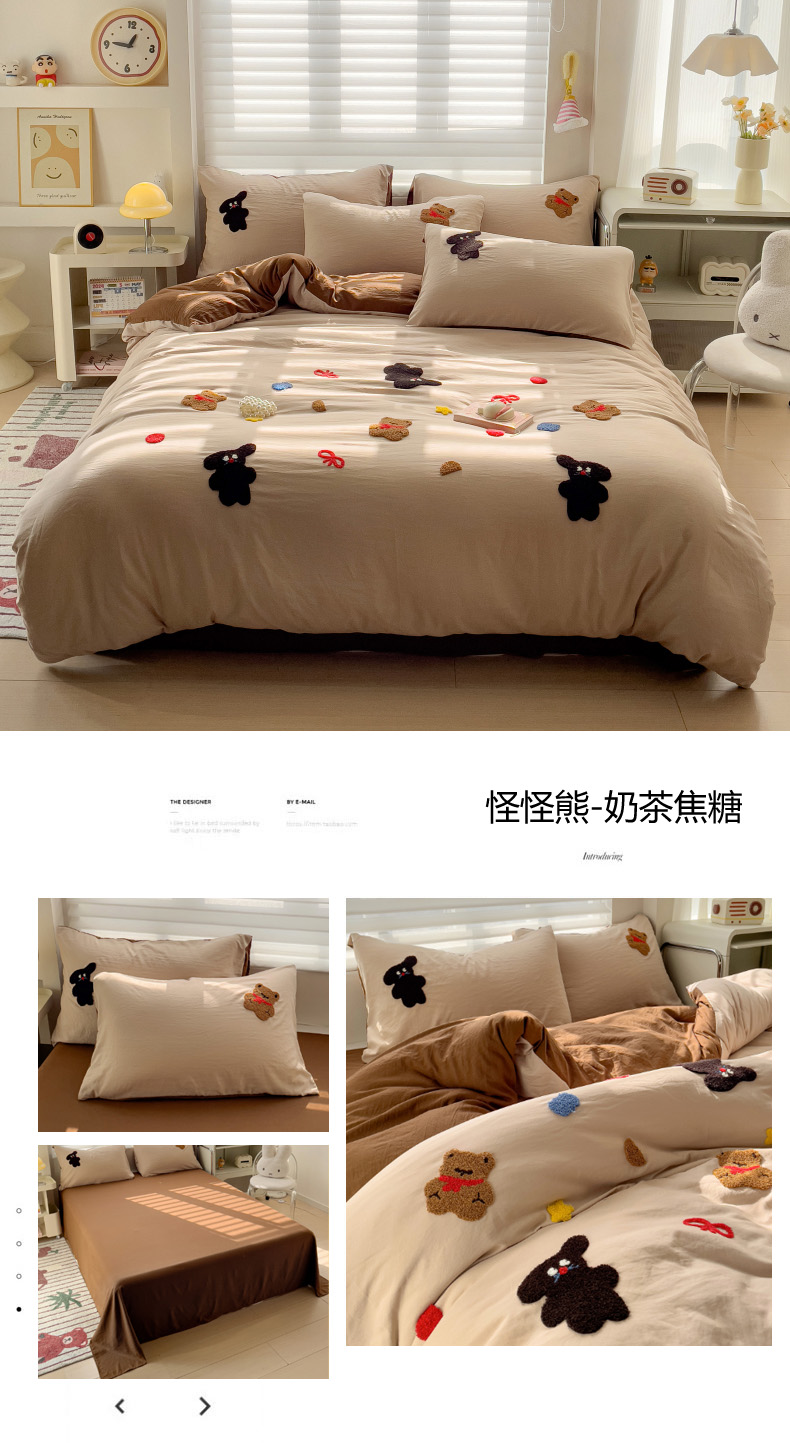当前位置: 91家纺网 > 商品网购 > 床品套件 > 四件套 > 水洗棉四件套 > 花伞家居 2025新款搞怪毛巾绣水洗棉怪怪熊四件套【提供买家秀】 怪怪熊-奶茶焦糖