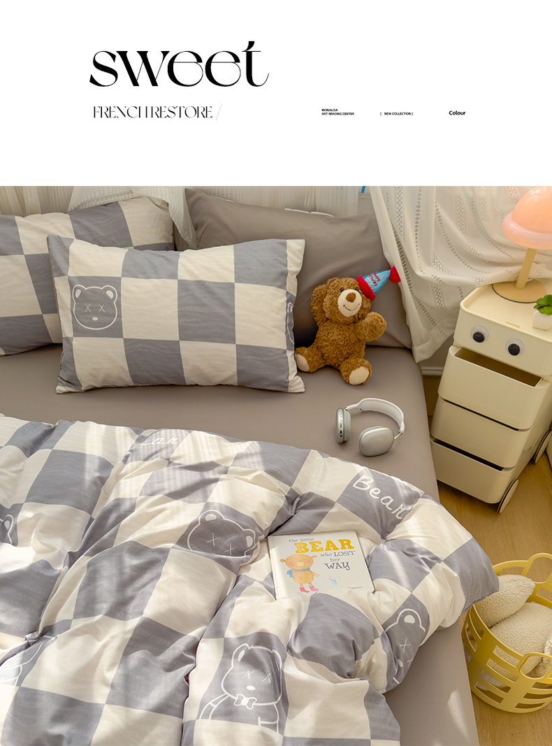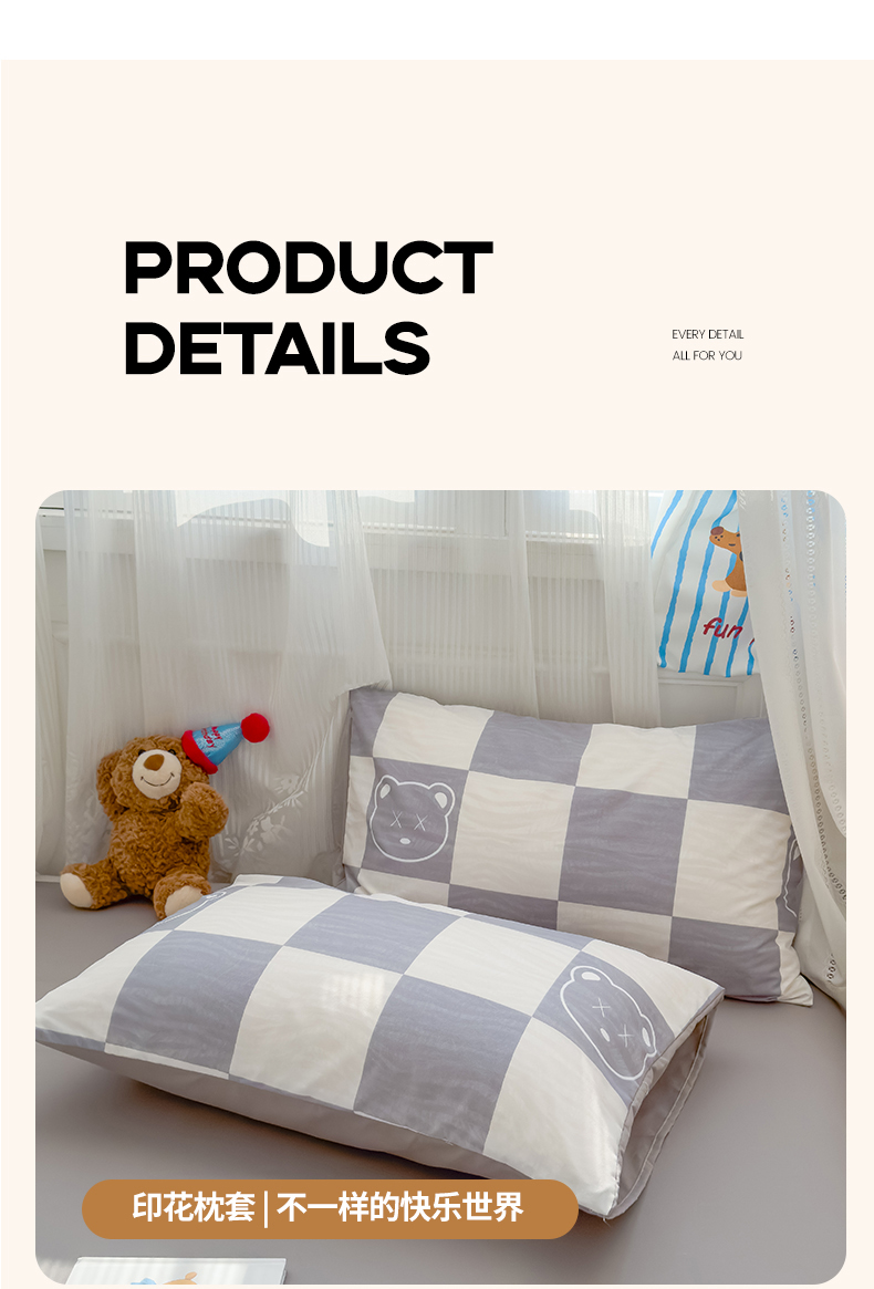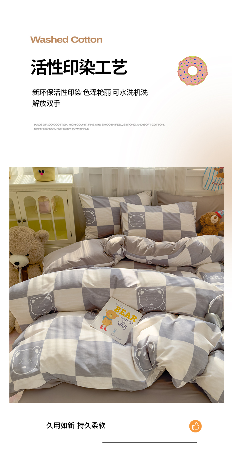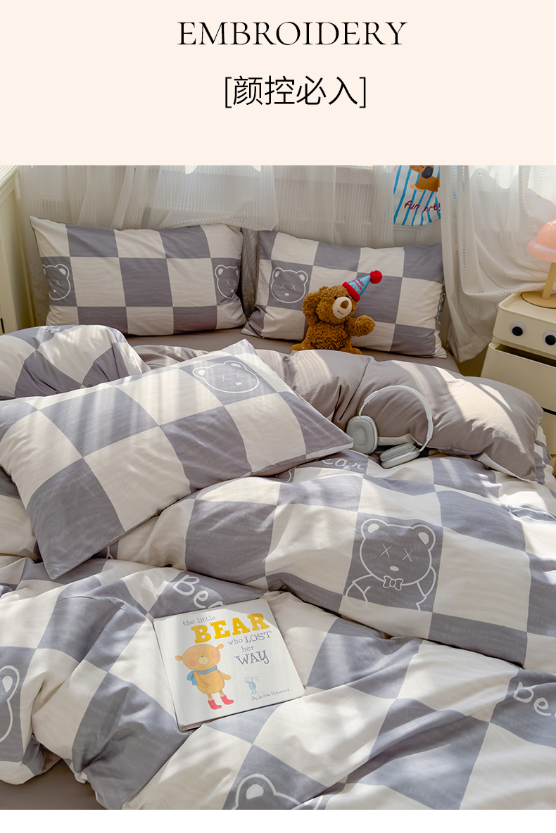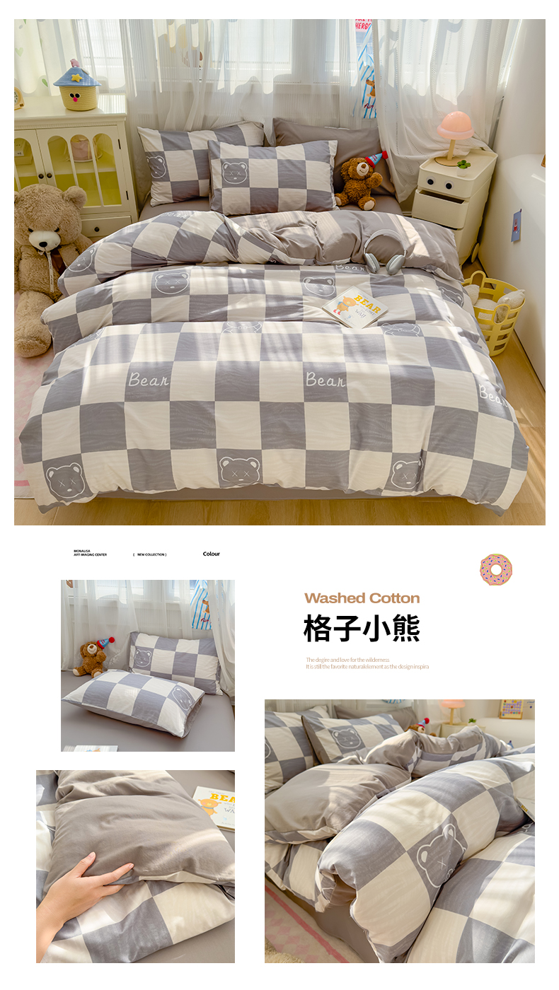 当前位置: 91家纺网 > 商品网购 > 床品套件 > 四件套 > 水洗棉四件套 > 宏源家纺 2025新款A类大版枕套水洗云朵棉四件套 格子小熊