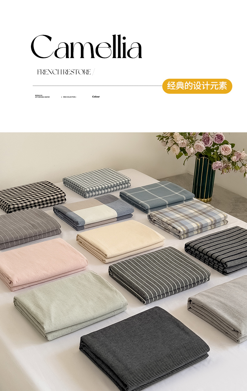 (总)柠萌家居 2026新款色织水洗棉四件套单被套,粉极细条,粉紫条,黄咖条,灰极细条,蓝咖条,绿极细条,绿紫条,米极细条,驼红条