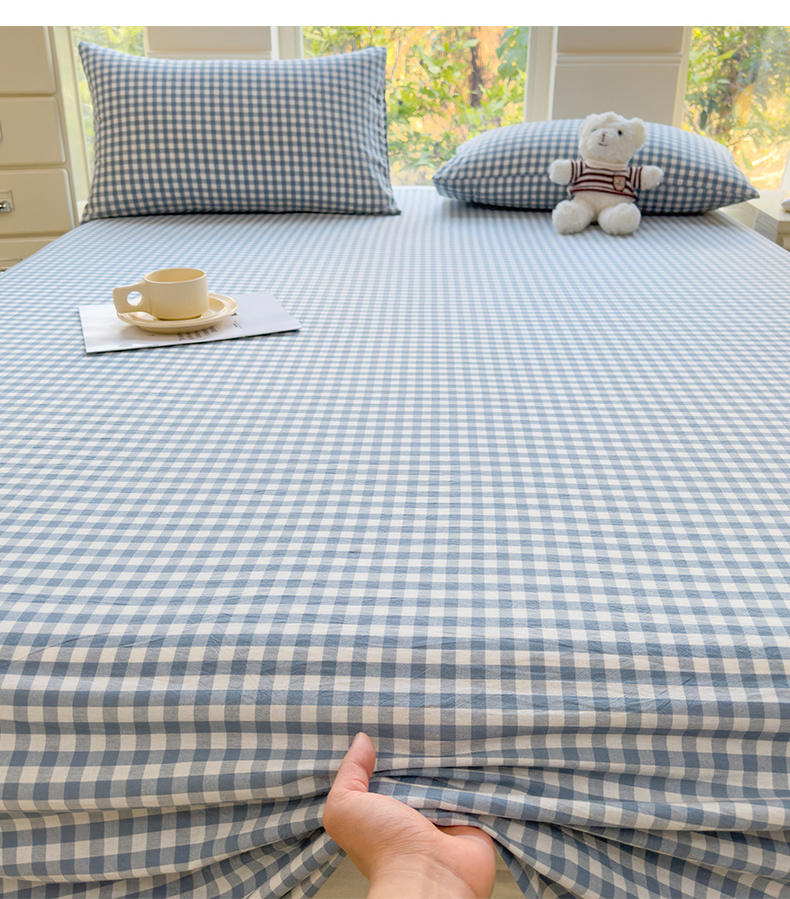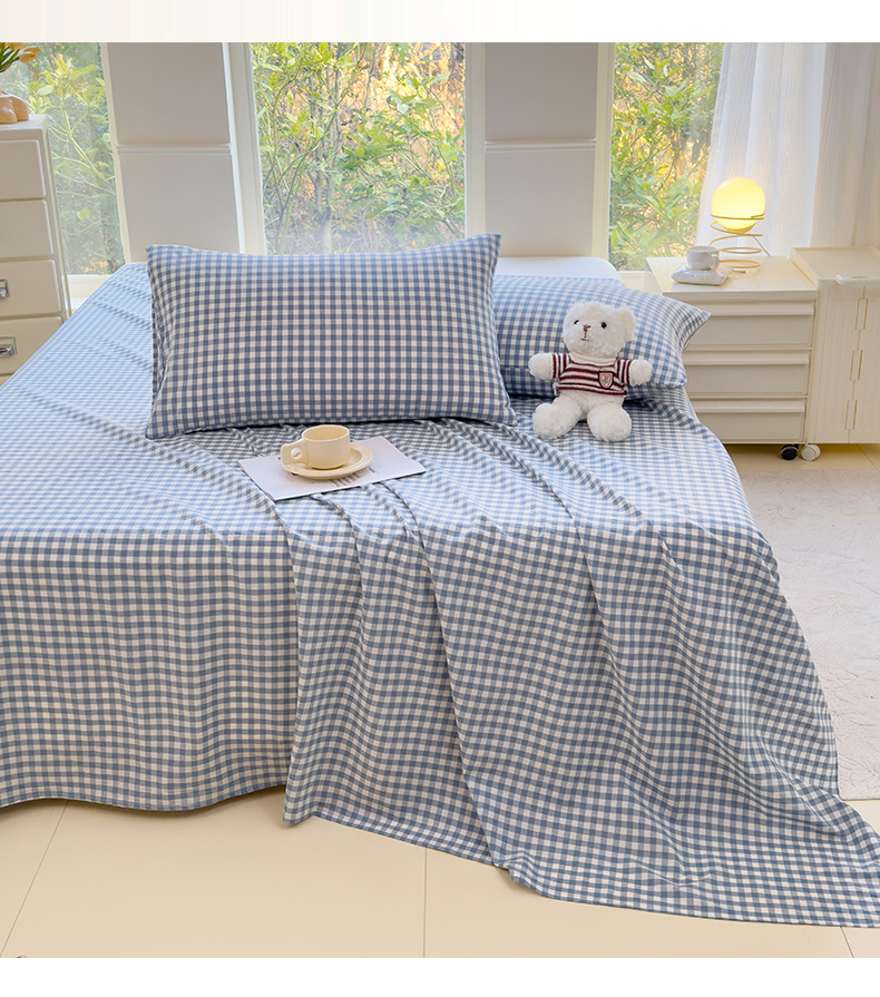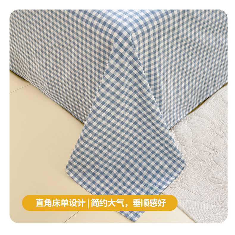 柠萌家居 2025新款无印风全棉色织A类母婴级纯棉水洗棉床单 浅蓝小格