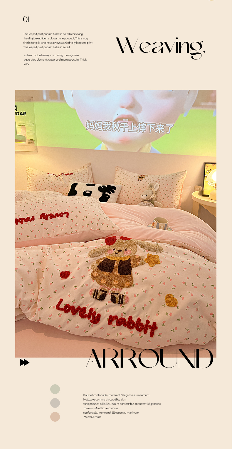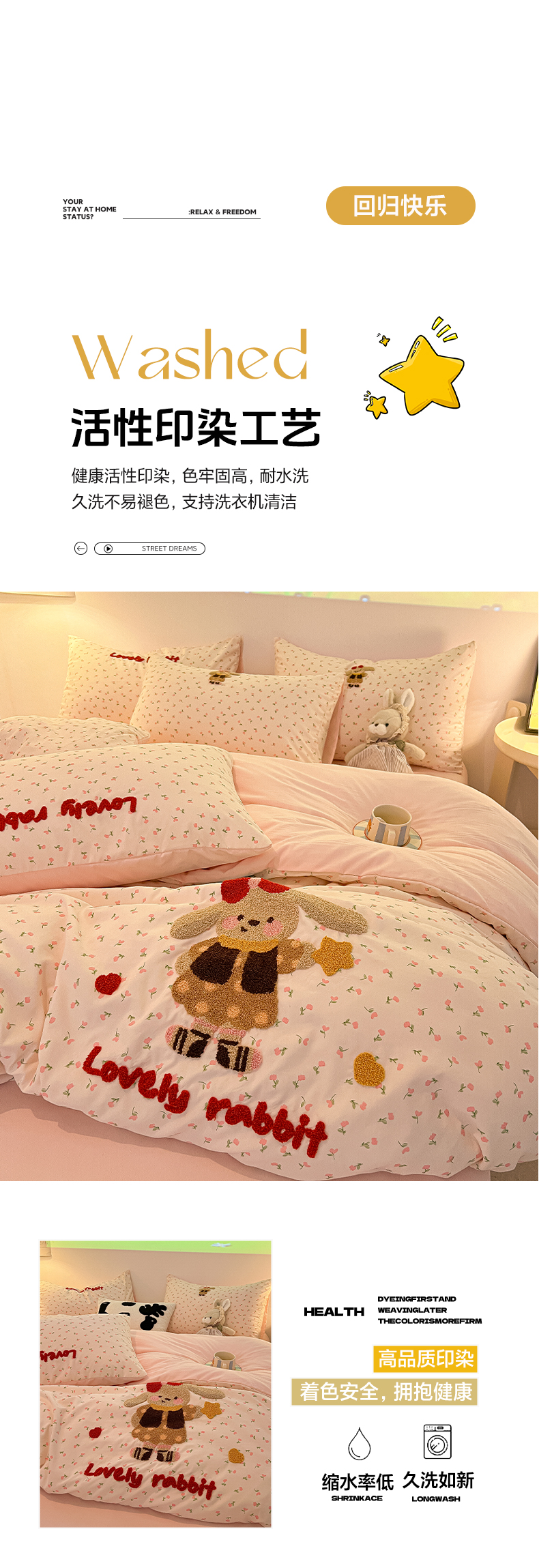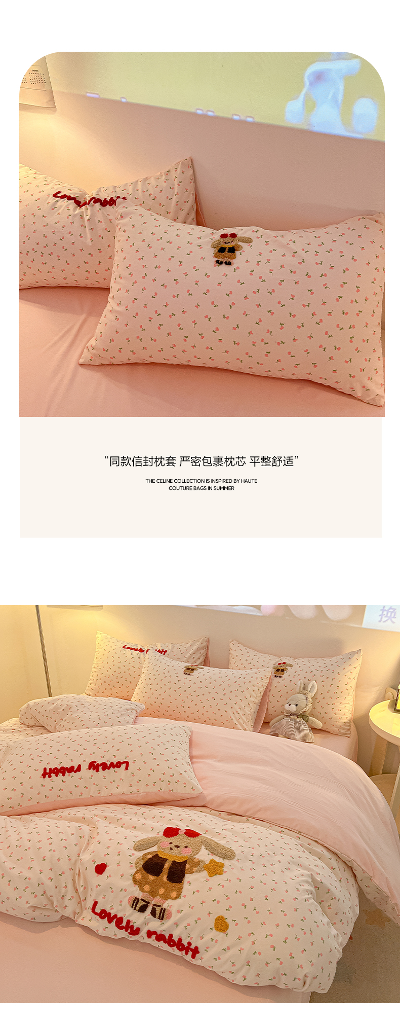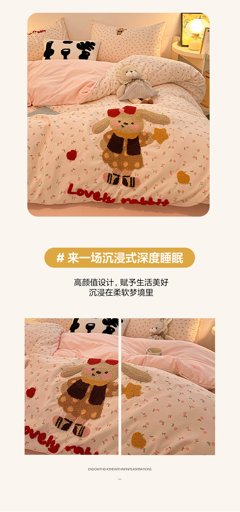 当前位置: 91家纺网 > 商品网购 > 床品套件 > 四件套 > 毛巾绣四件套 > 韩巢家纺 2025新款云朵棉可爱小猫咪毛巾绣被套床单床上用品四件套宿舍三件套(提供卖家秀) 花花兔