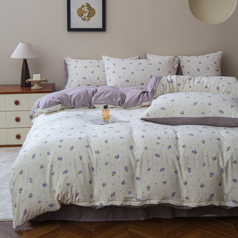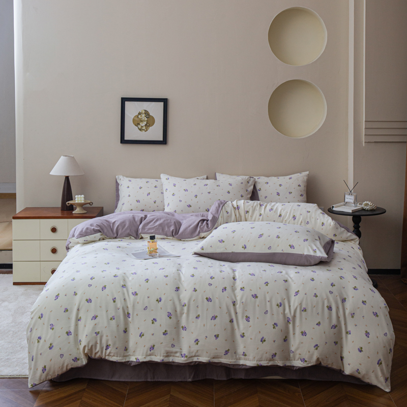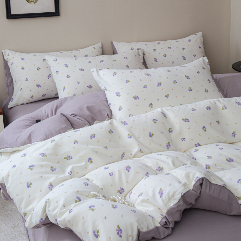 斯卡诺家纺 2025新款针织天竺棉水洗棉四件套被套学生宿舍三件套床单款 葡萄多多